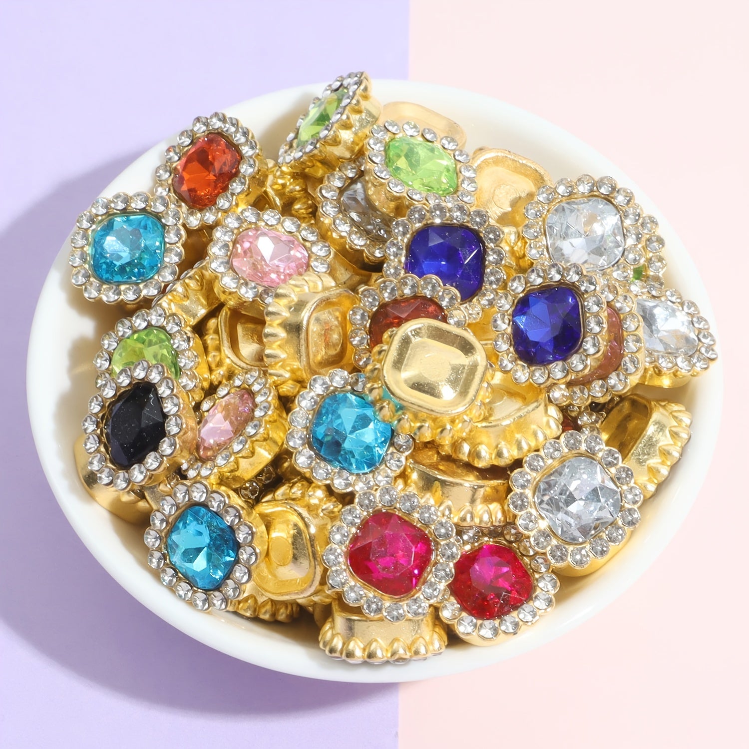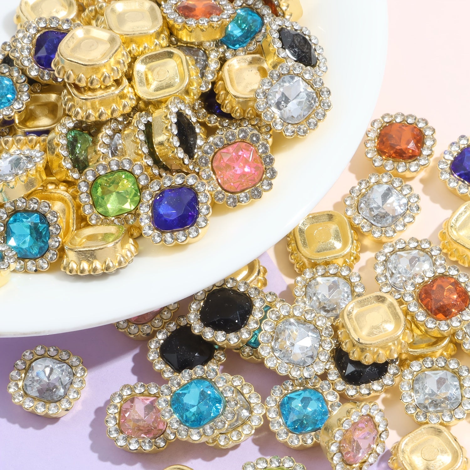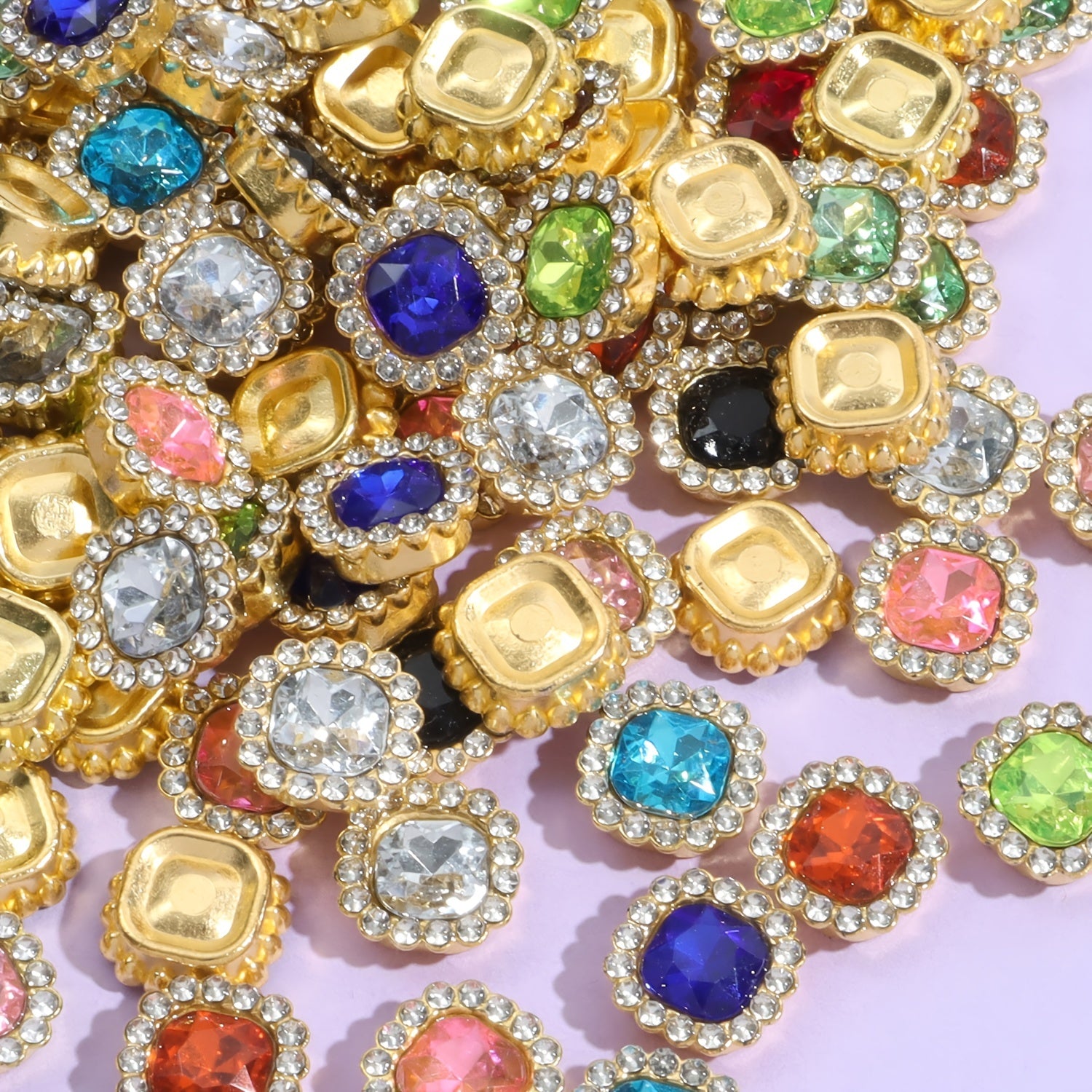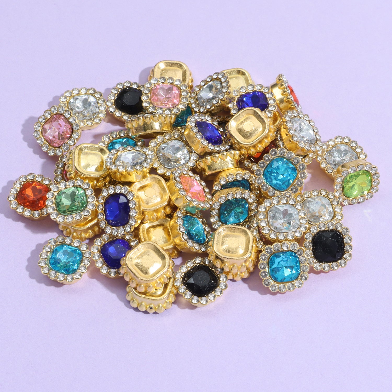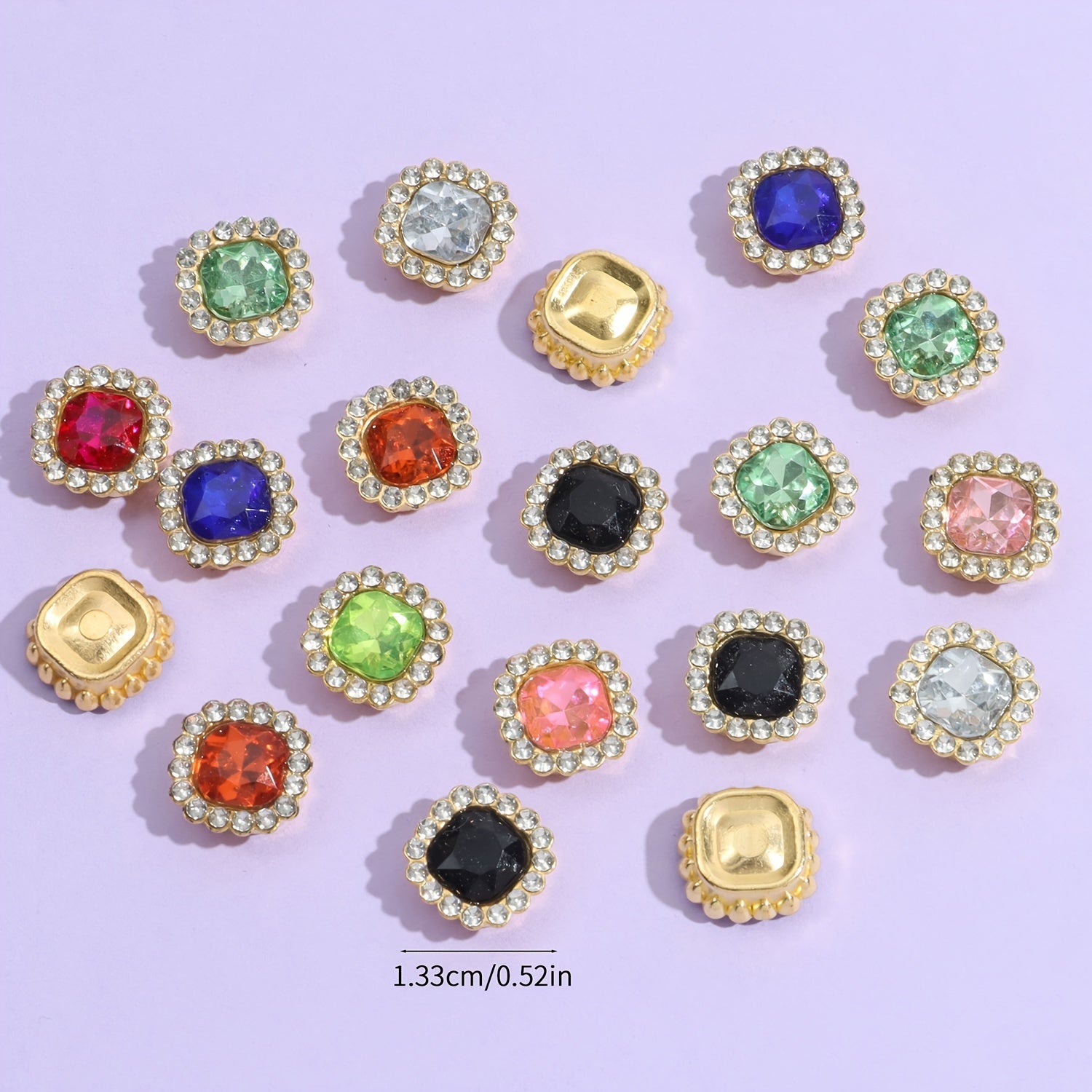 Enhance your craft projects with this set of 25 plastic fat square flower artificial diamond beads measuring 1.0.52in. These beads add a touch of elegance and sparkle to your creations.