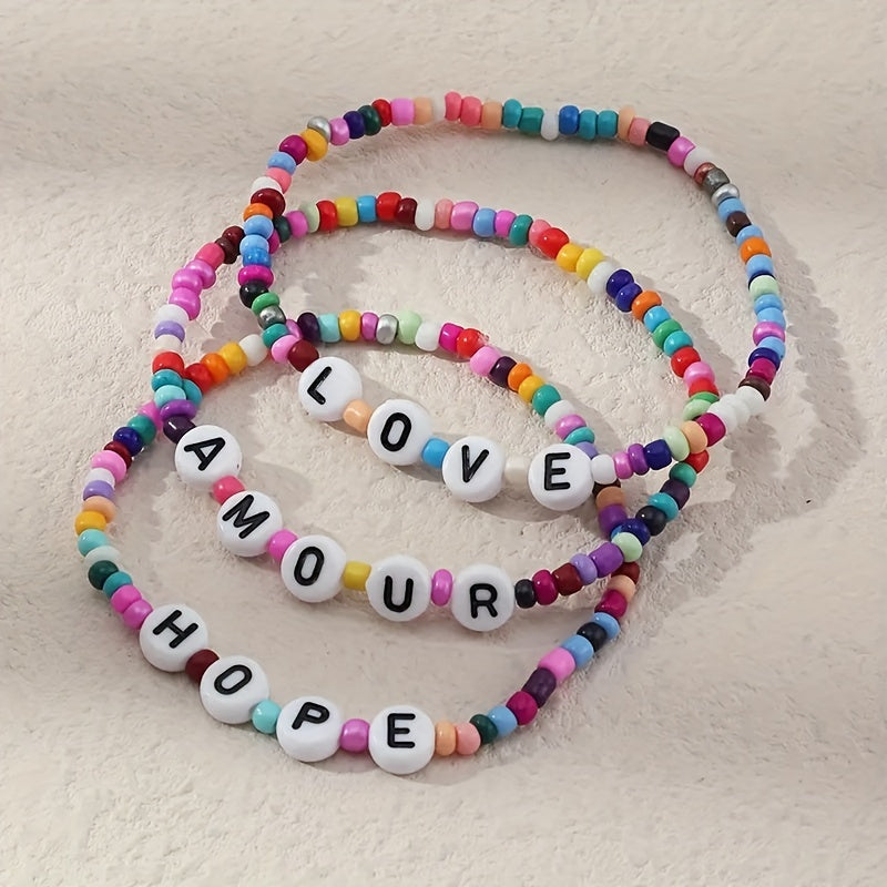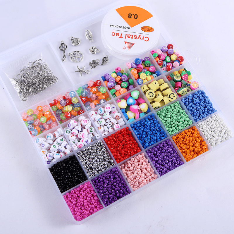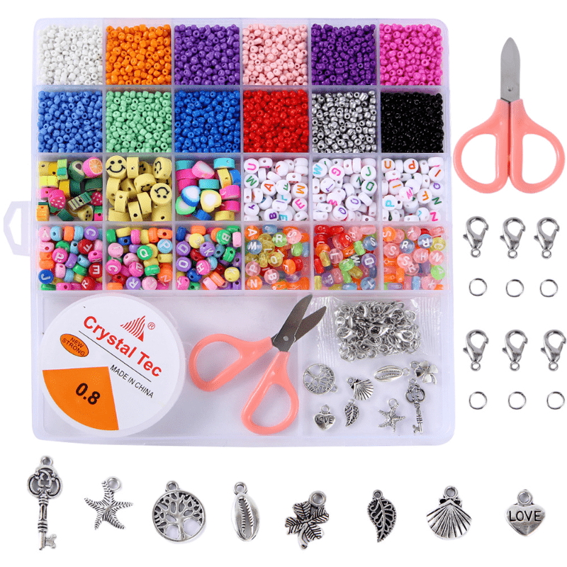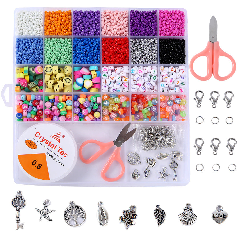 Create beautiful bracelets with this DIY material set including rice beads, letter beads, and soft pottery beads.