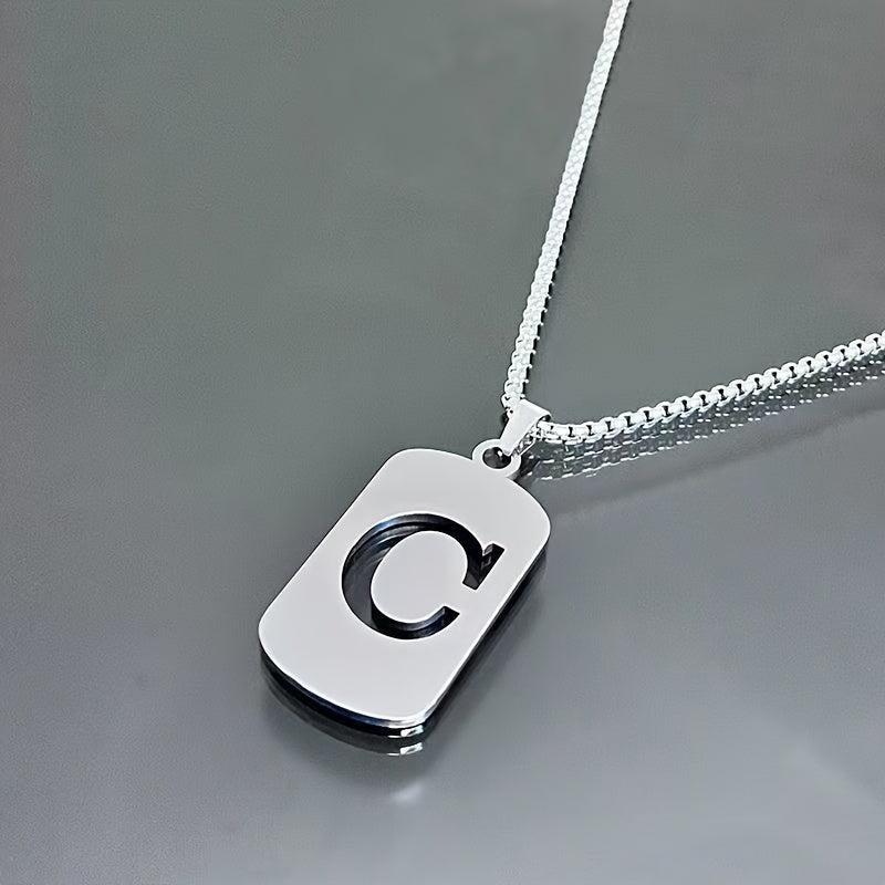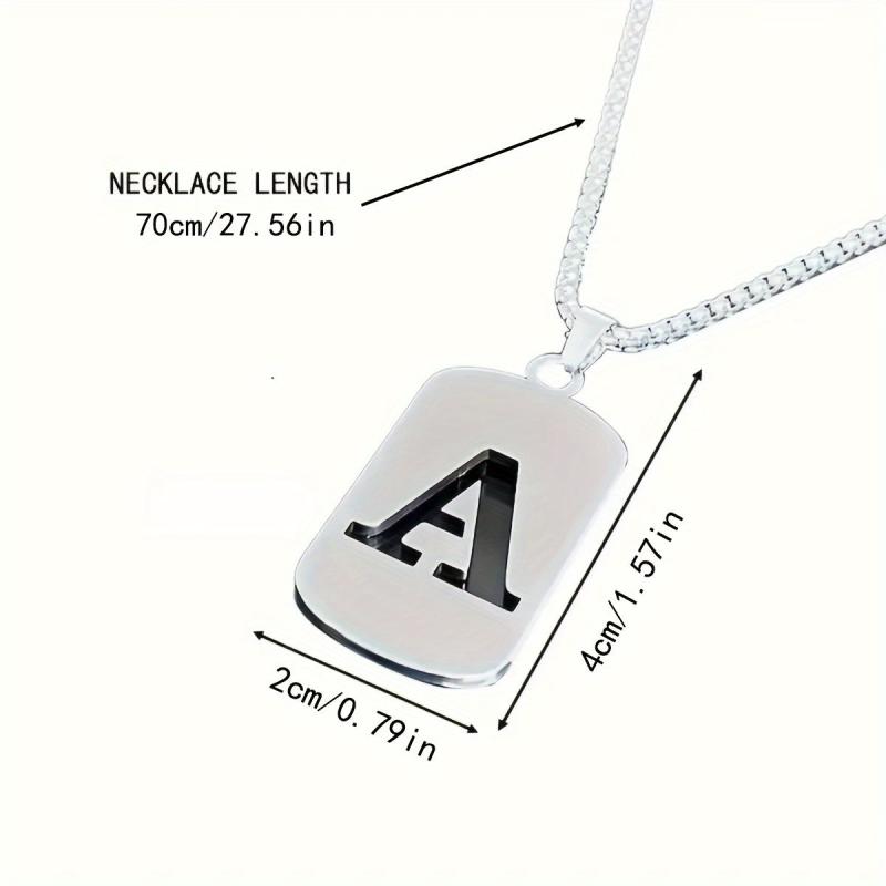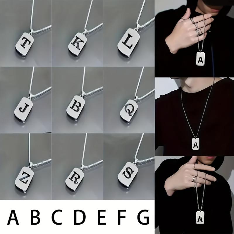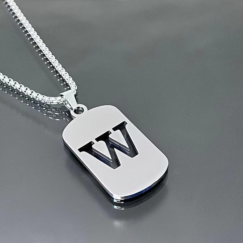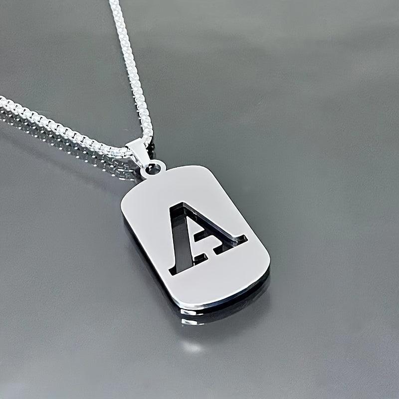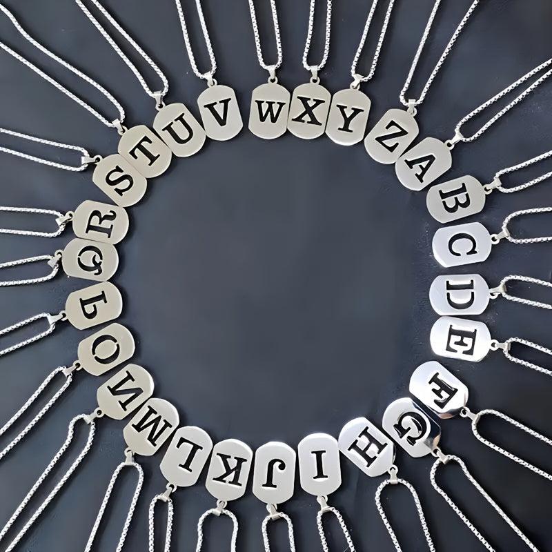 This sleek stainless steel pendant necklace features all 26 letters of the alphabet. It is a perfect gift for men and comes with an O shaped chain for a stylish look.