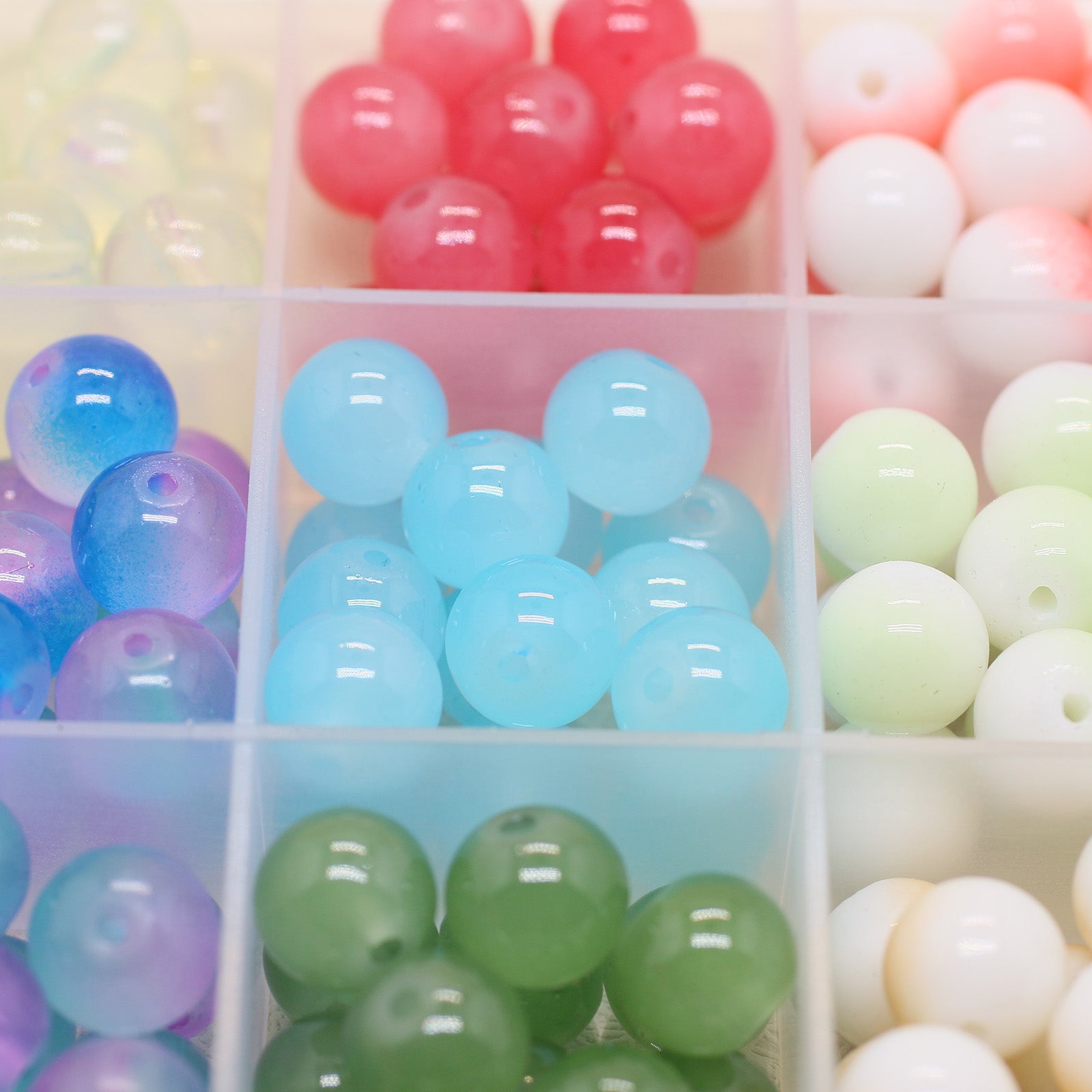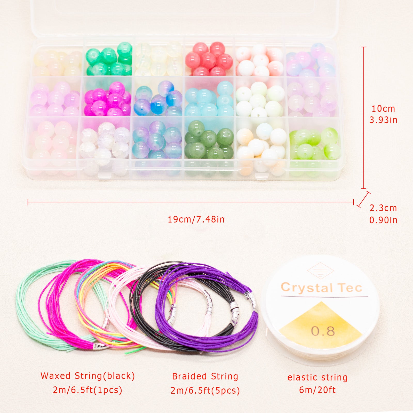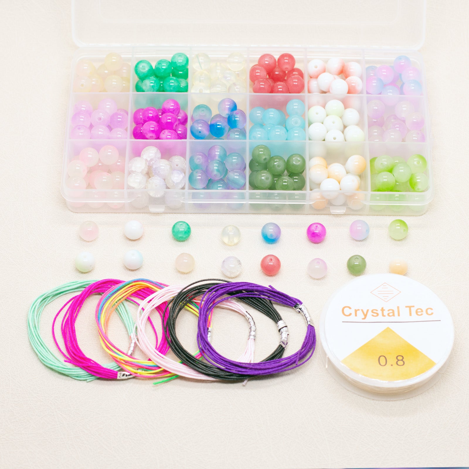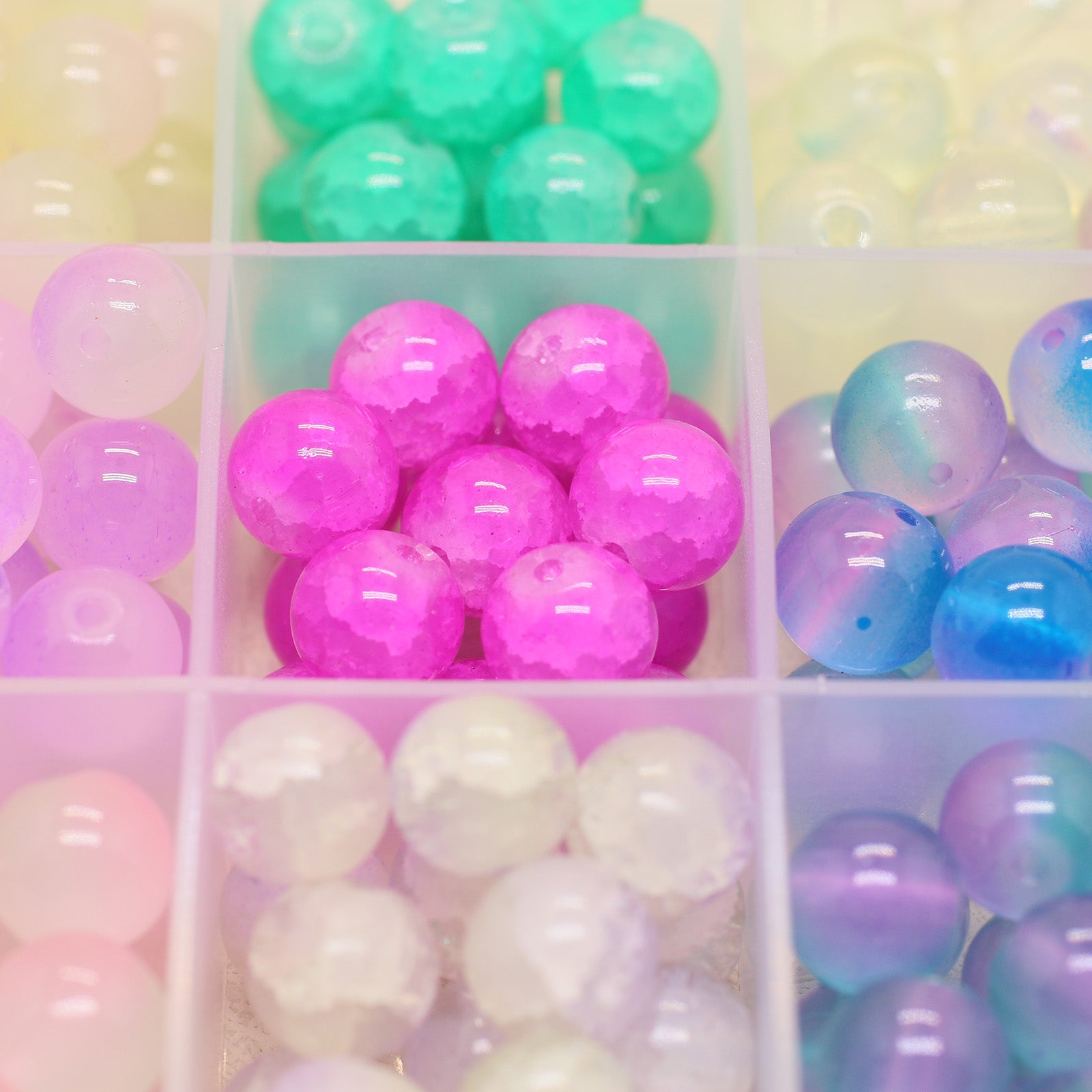 Create stunning DIY bracelet and necklace accessories with these semi-finished jewelry components. Each set includes 270 10mm crackle glass round beads and double porcelain beads.
