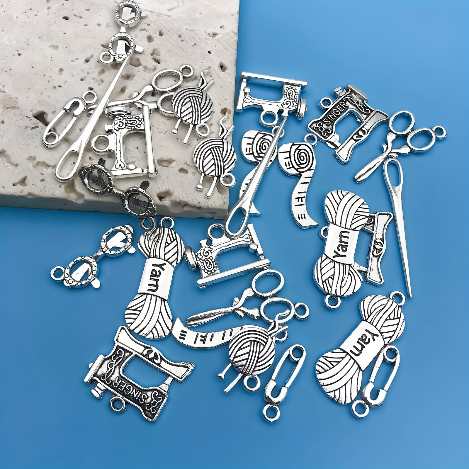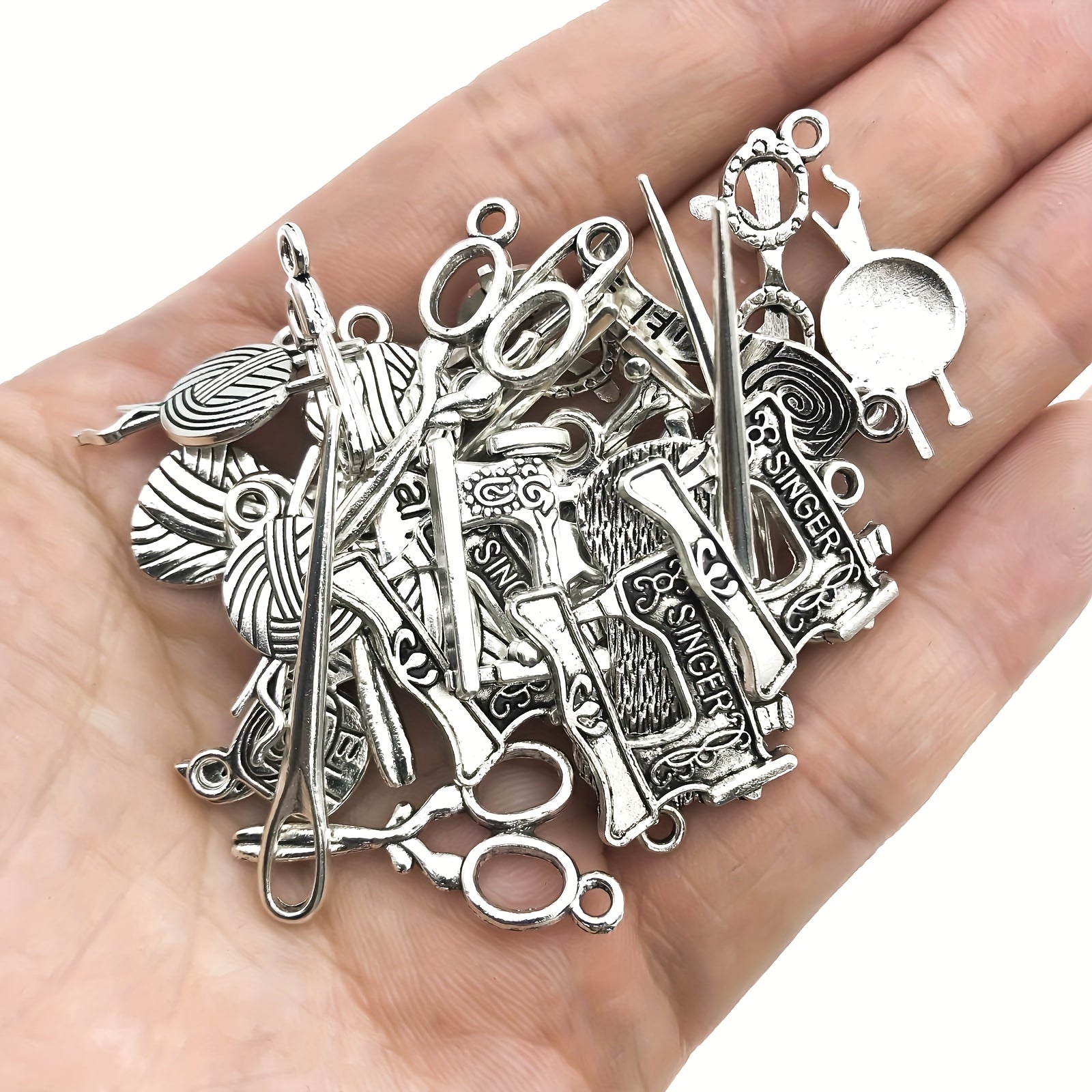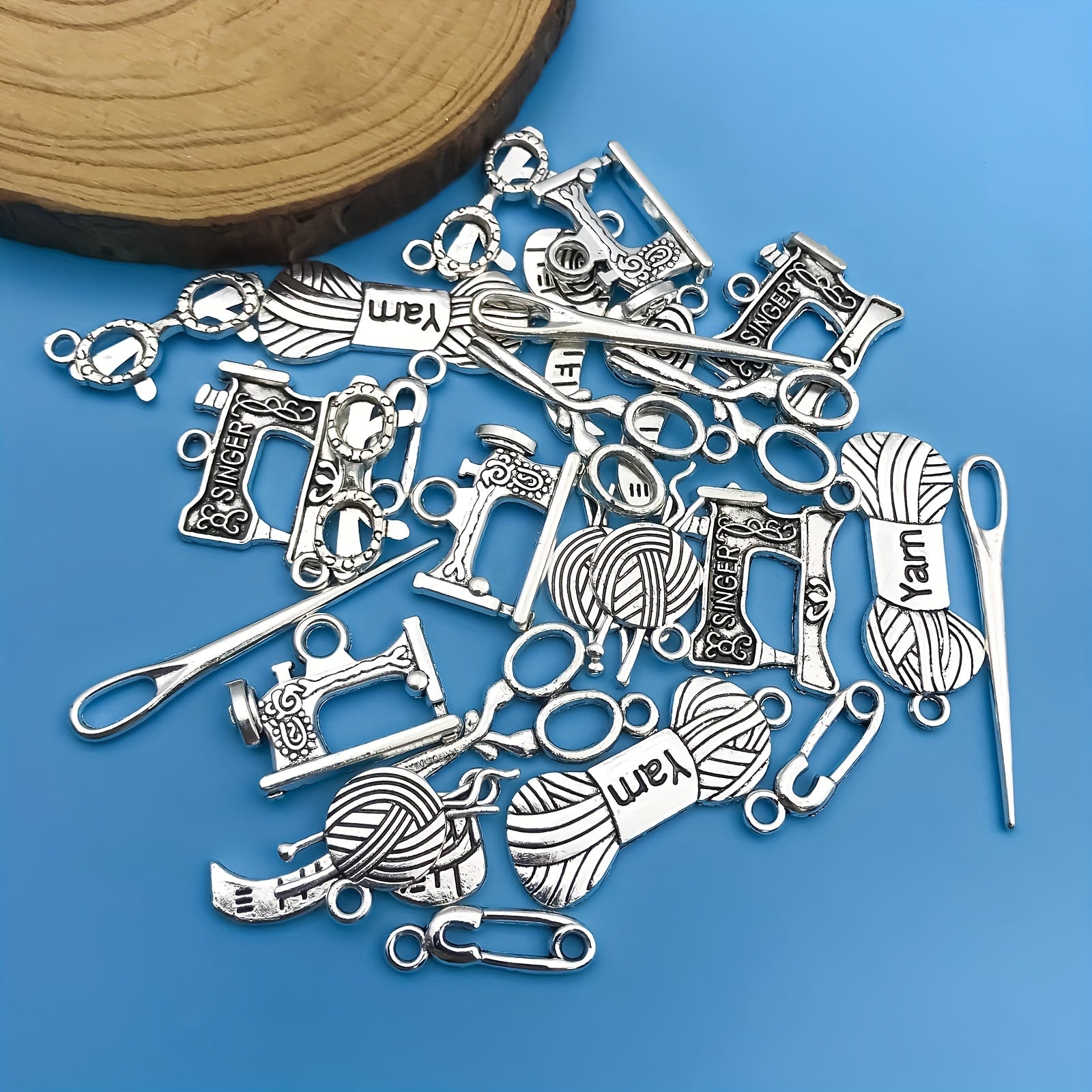 Create unique jewelry pieces with this set of 27 zinc alloy antique silver charms shaped like sewing machines. Ideal for necklaces, bracelets, and earrings.