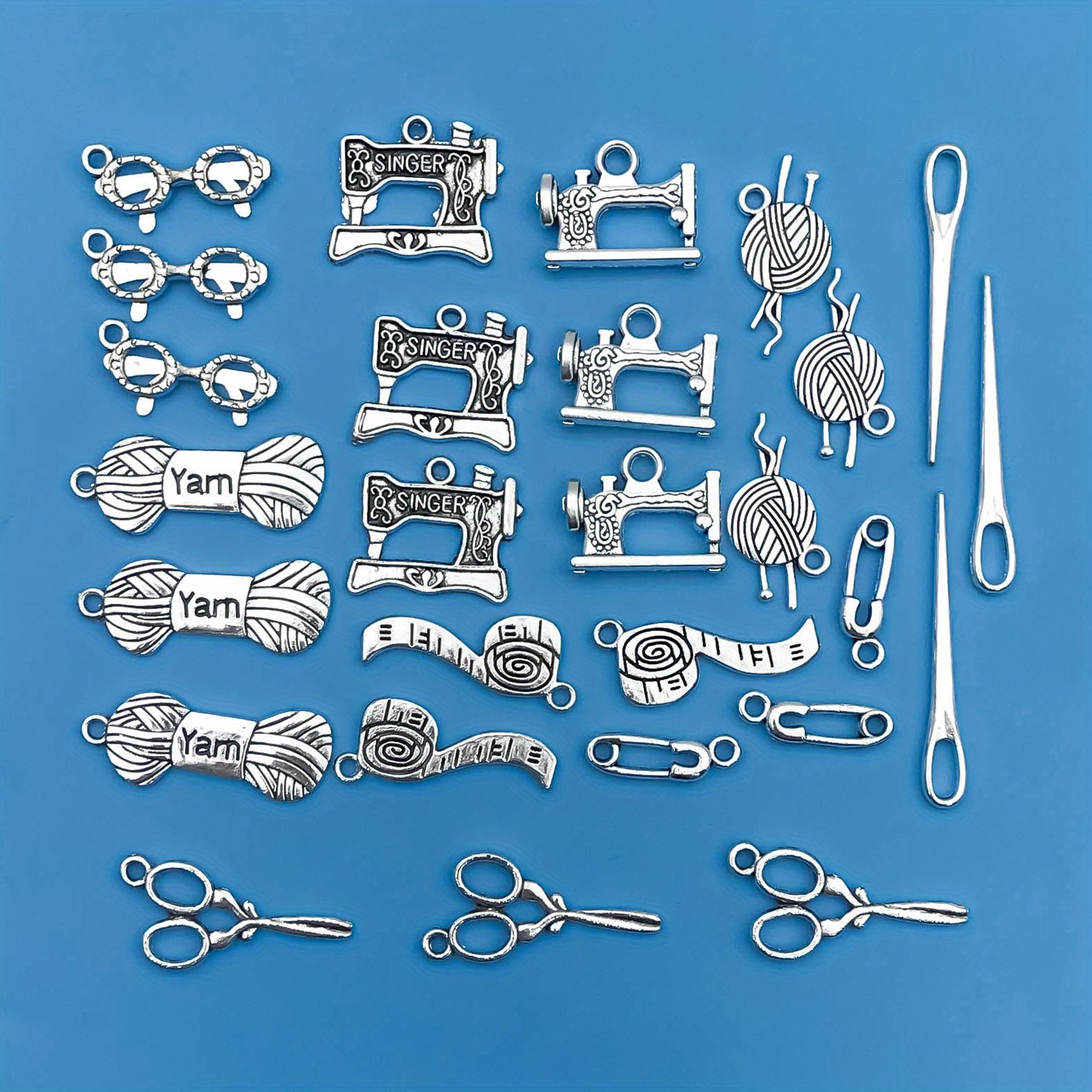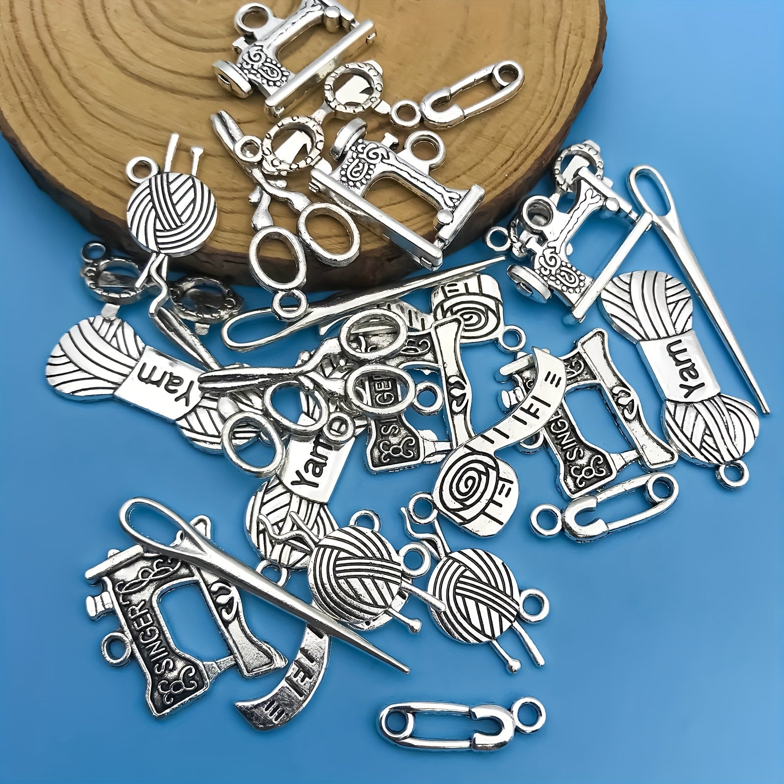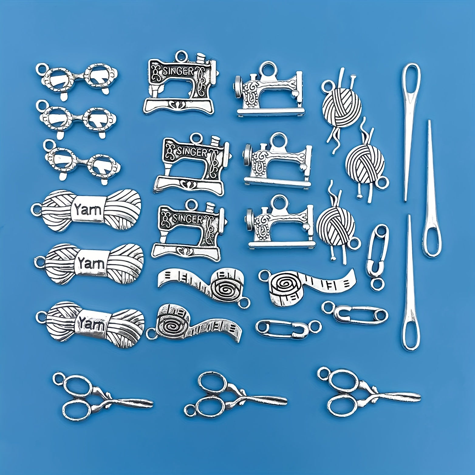 Create unique jewelry pieces with this set of 27 zinc alloy antique silver charms shaped like sewing machines. Ideal for necklaces, bracelets, and earrings.