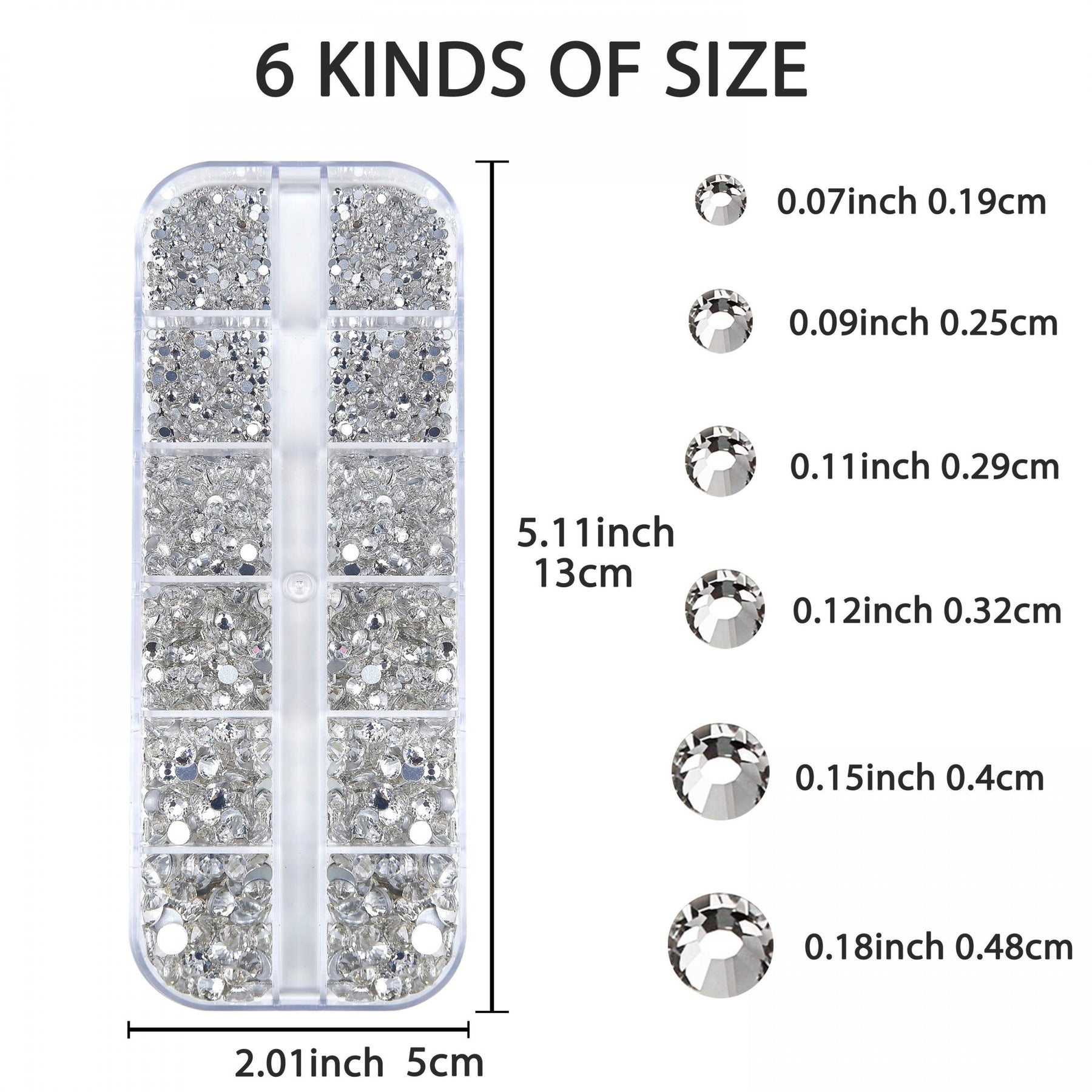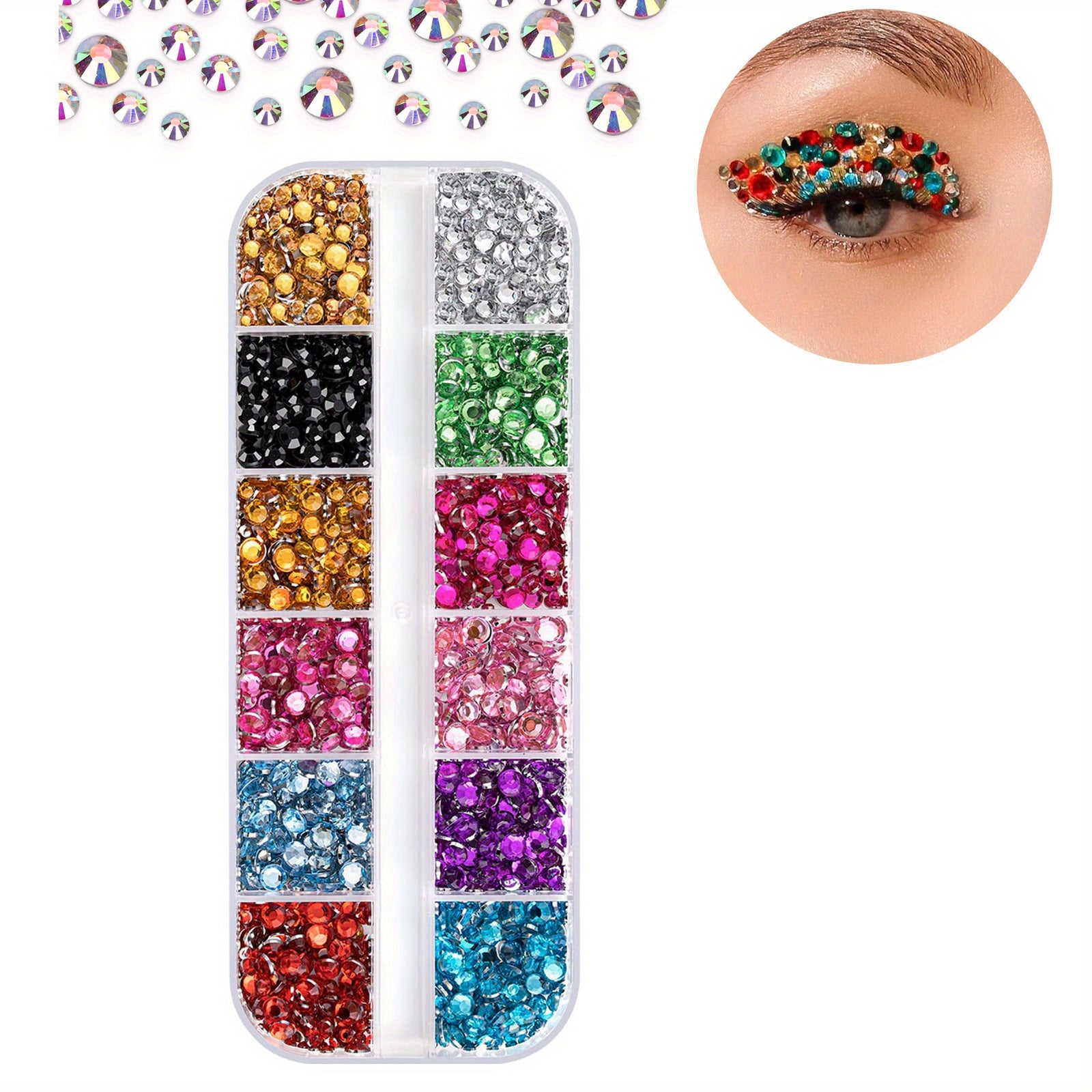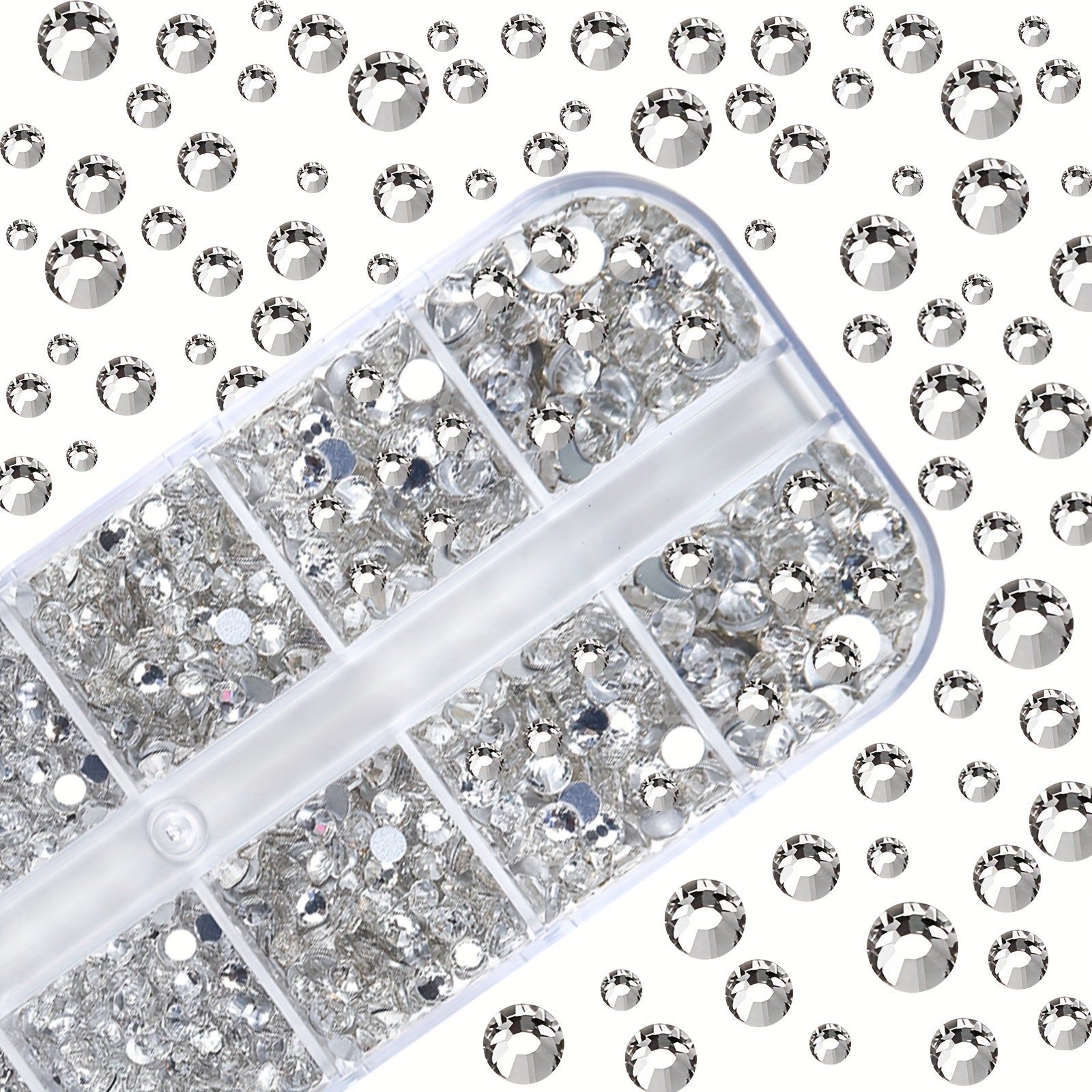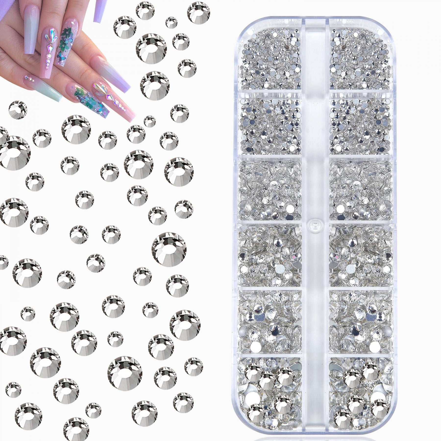 Get a variety of 2800 clear flat rhinestones with storage box. Perfect for nails art, crafts, eye makeup, DIY projects, jewelry making, and more.