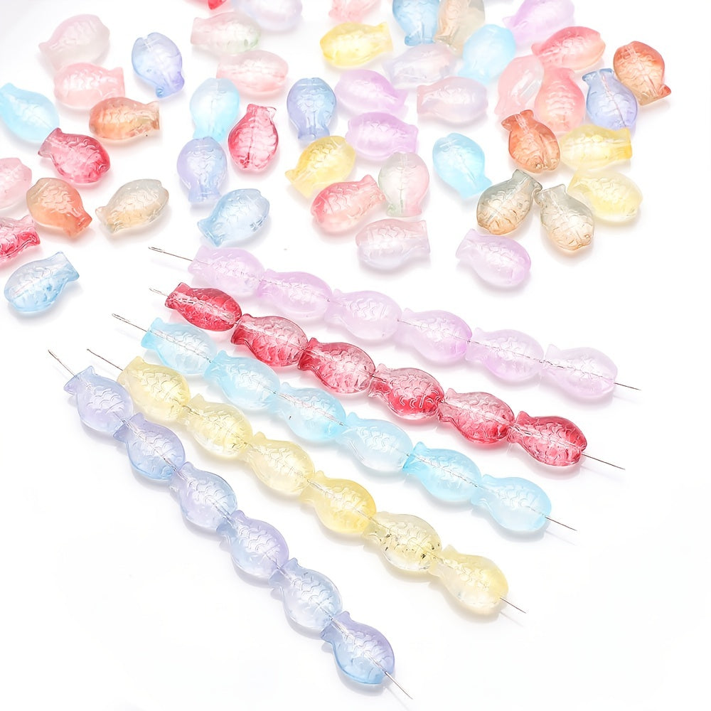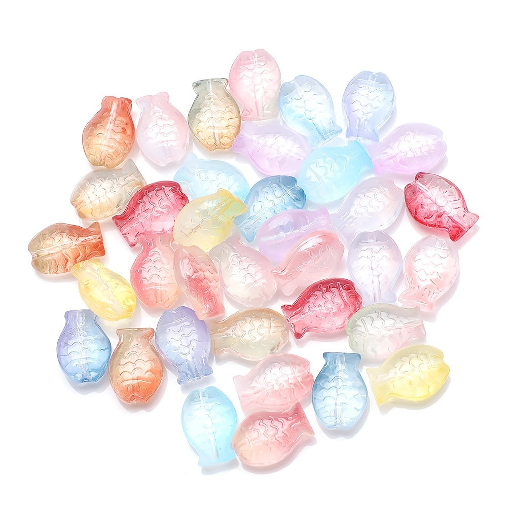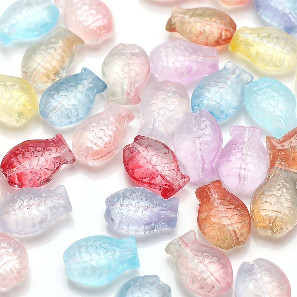 Create unique jewelry with this set of 28 gradient small fish crystal glass beads. Perfect for making earrings, bracelets, and necklaces.
