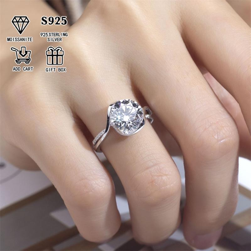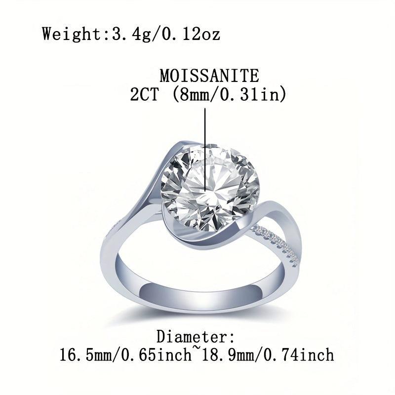 This stunning engagement ring features a sparkling round cut 2ct moissanite stone set in hypoallergenic 925 sterling silver. The unique cross twist design adds a touch of elegance and is perfect for daily wear or special occasions.