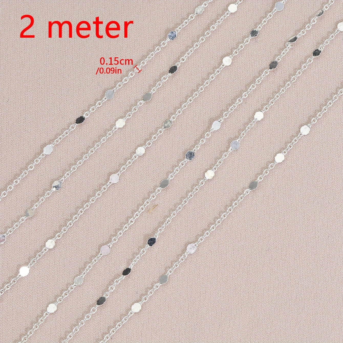 This 2 meters 200 cm chain necklace is made of silver metal copper, perfect for jewelry making components. The chain is durable and does not fade over time, ideal for craft DIY projects.