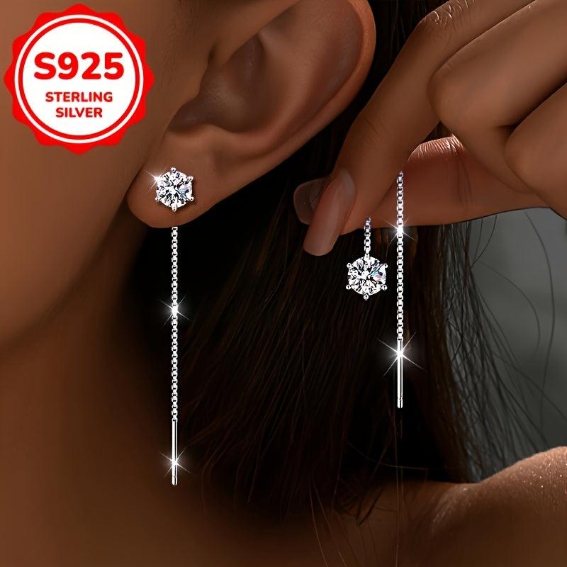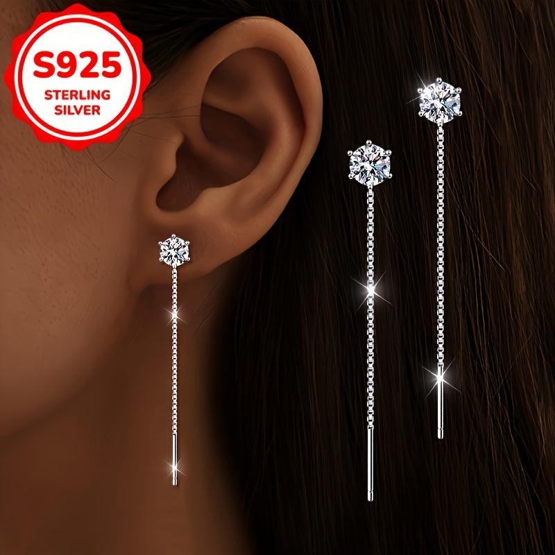 Elegant and stylish dangle earrings perfect for spring and summer. Made of 925 silver with six claw pendant design. Ideal gift for mother, wedding, bridesmaid, or yourself.