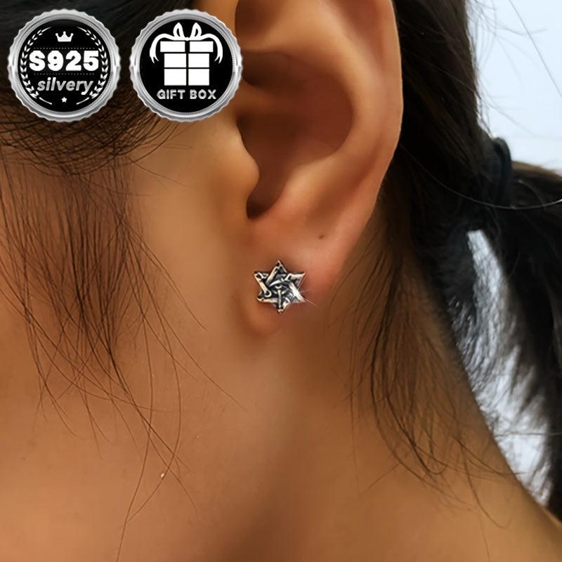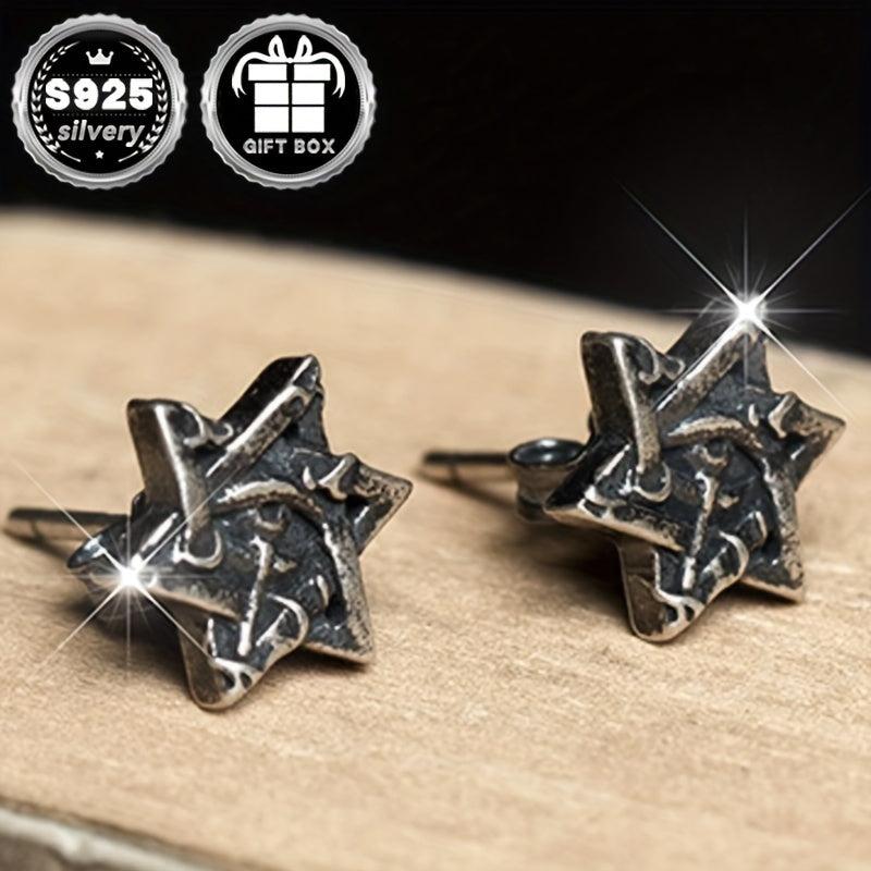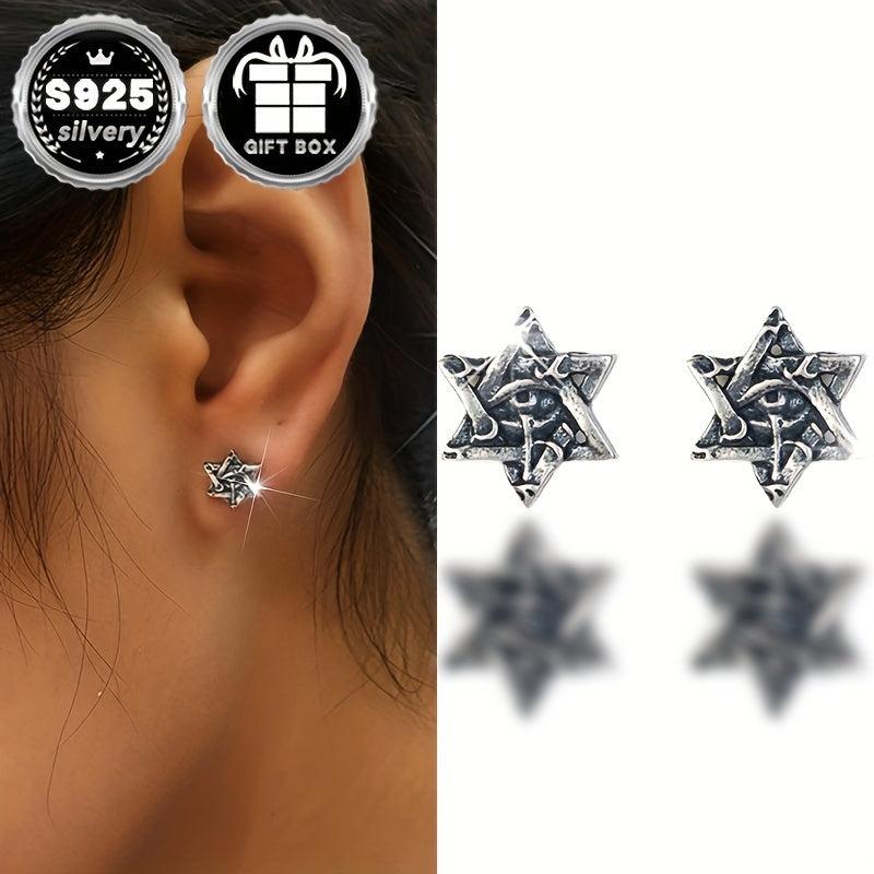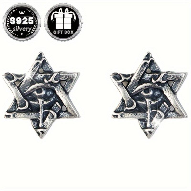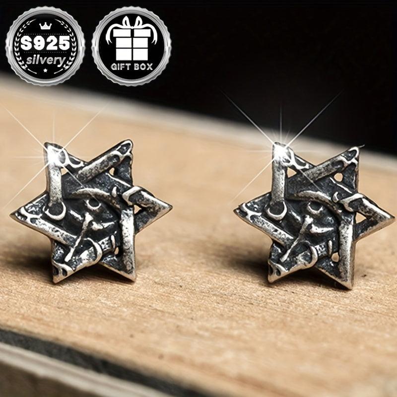 These Silvery earrings feature a retro gothic punk design with a six-pointed star and Horus eye. Perfect for Halloween parties and holidays.