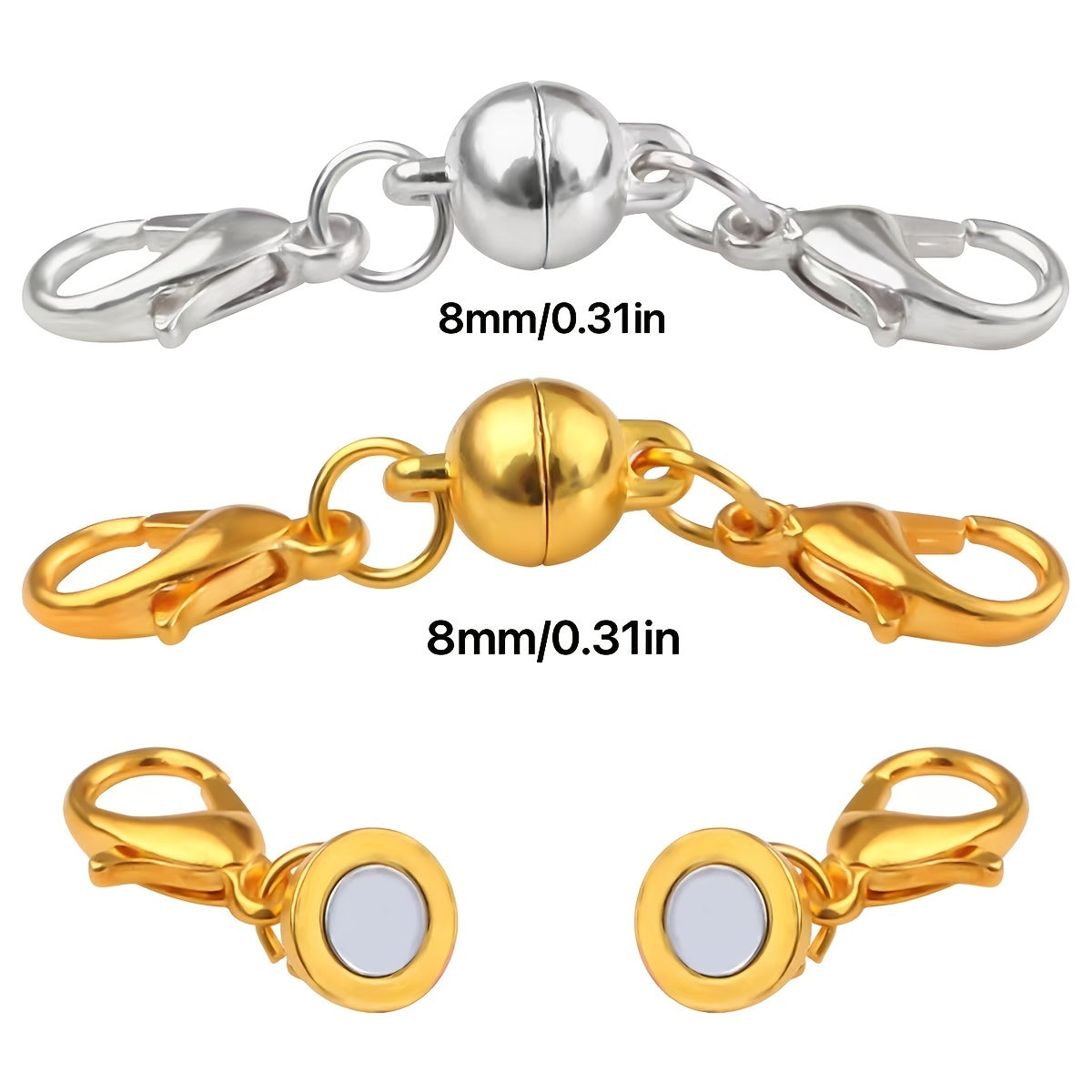 Get this 2-pack of 8mm solid copper spherical magnet buckles for your DIY projects. Use them as clasps for bracelets, necklaces, or even mask connectors.