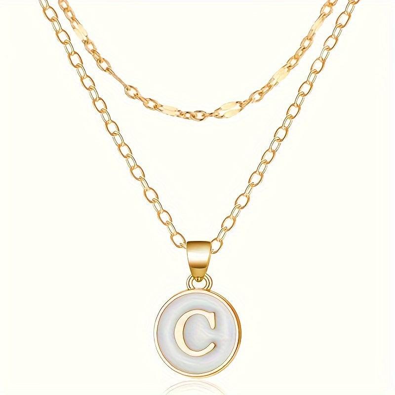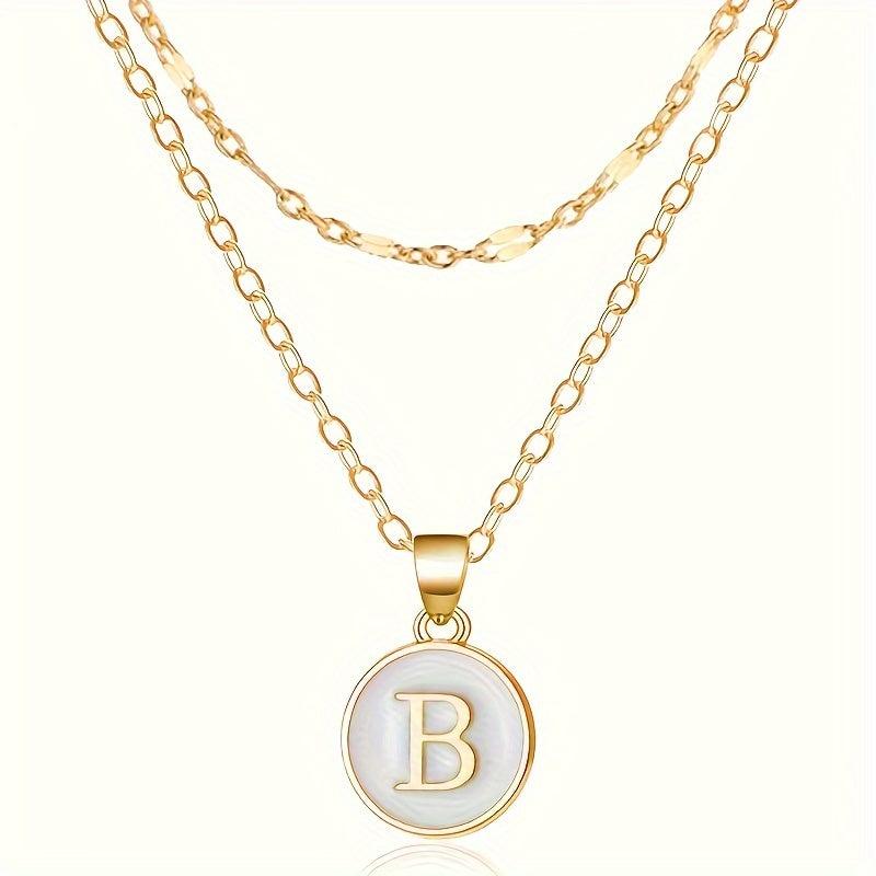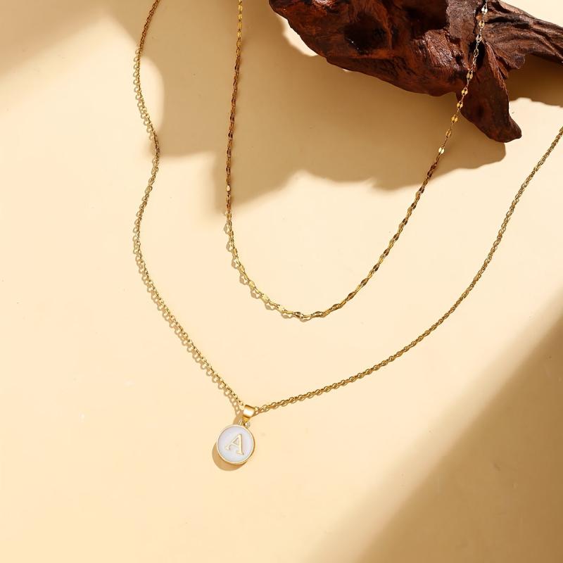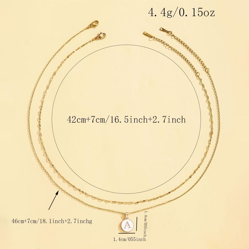 Elegant set of 2 necklaces featuring A initial, made of stainless steel with golden tone layered script and number pendants.