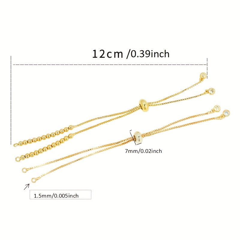This set includes 2 adjustable brass bracelets with copper bead chains, perfect for DIY bracelet making projects. The chains can be extended to fit various wrist sizes.