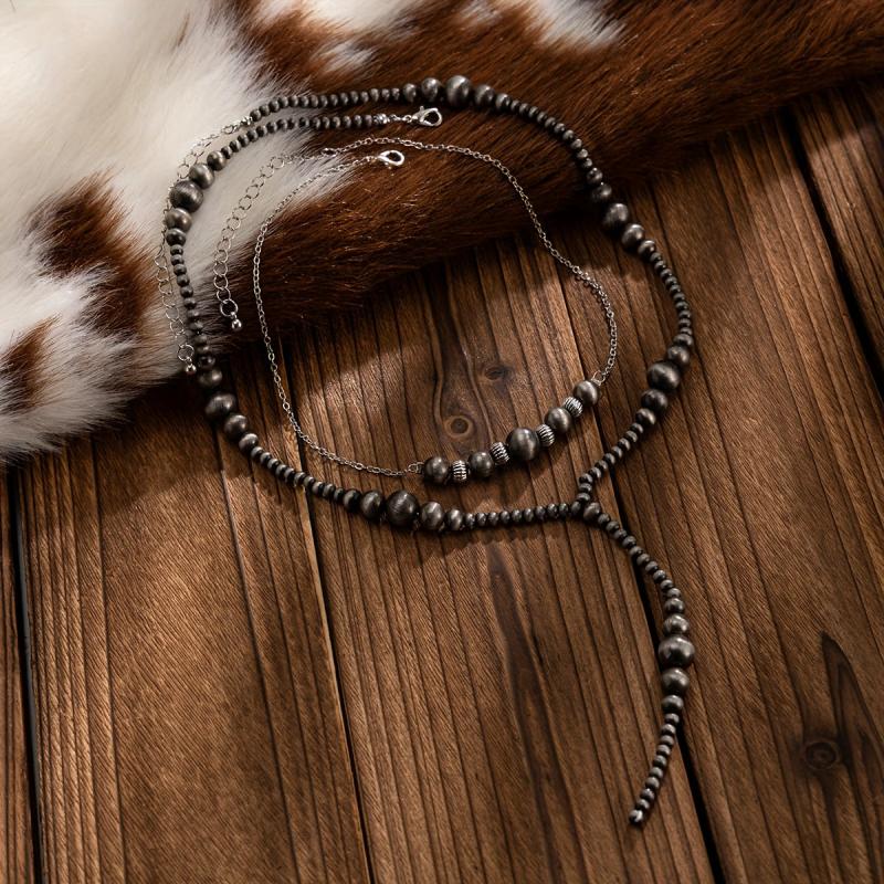 Add a touch of bohemian style to your summer look with this set of 2 beaded Y necklaces. These minimalist necklaces are ideal for adding a chic and trendy vibe to your outfits.