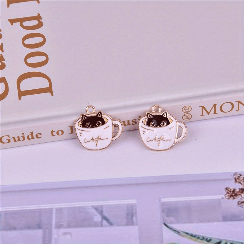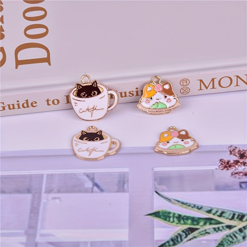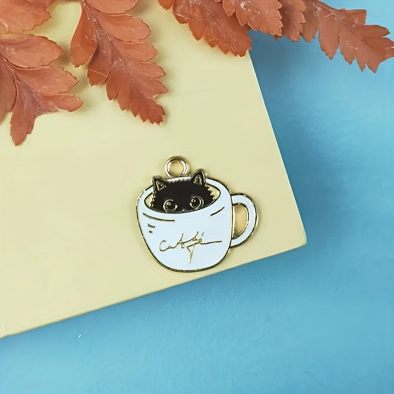 This set includes a cat teacup pendant necklace, bracelet, earring, and keychain pendant for crafting stunning jewelry pieces.