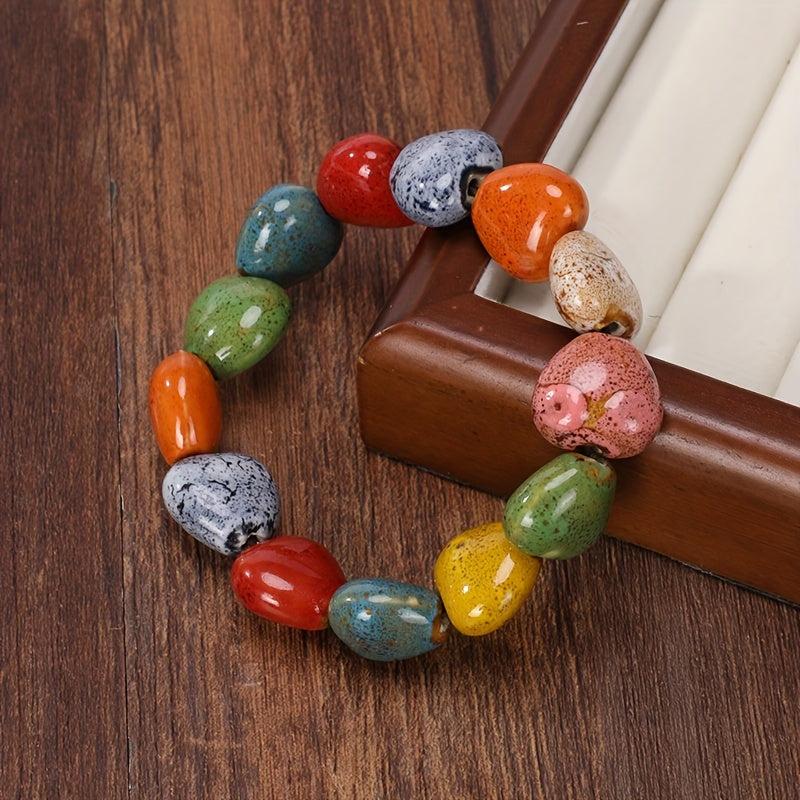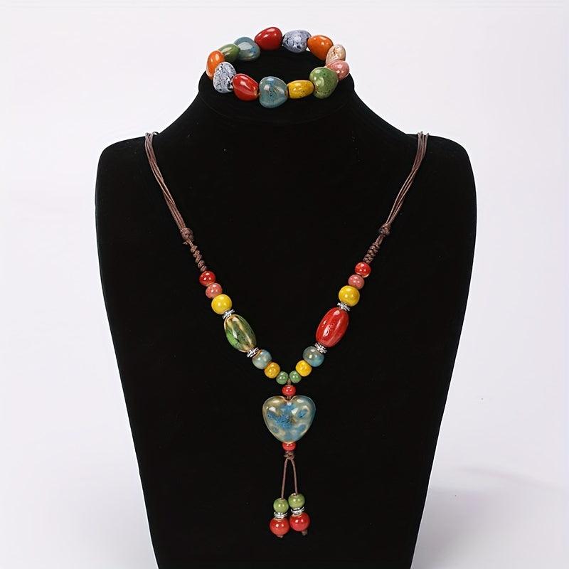 Add a pop of color to your casual attire with this ceramic necklace and bracelet set featuring heart-shaped pendants in vibrant dopamine colors.