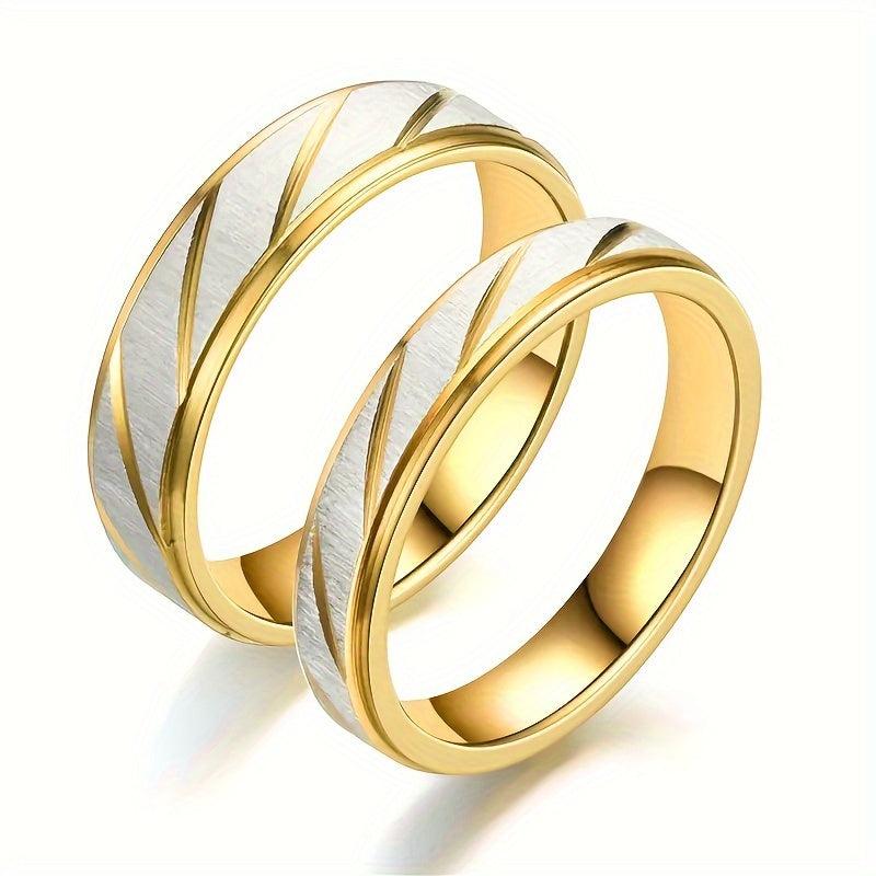 2pcs Couple's Interlocking Band Rings 14K Plated Stainless Steel Wedding Gift