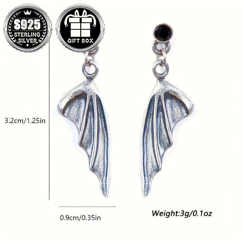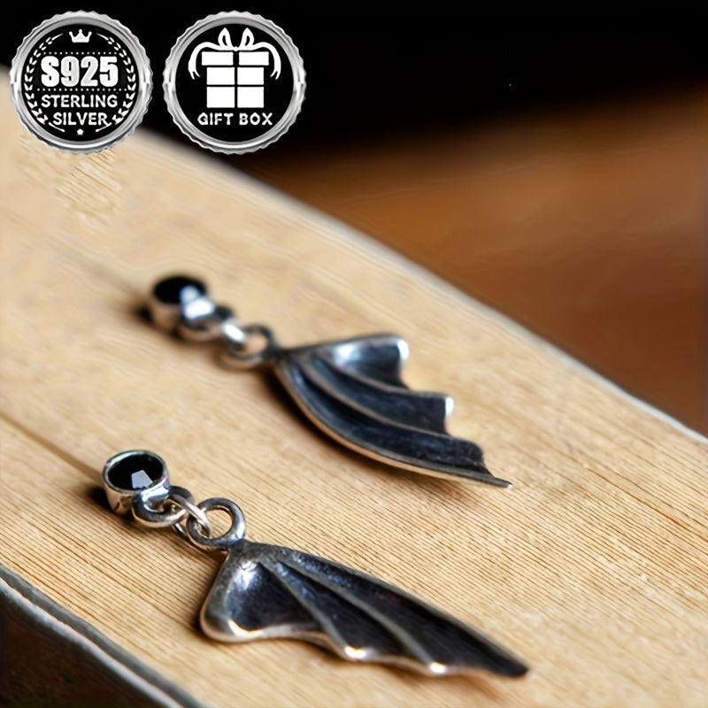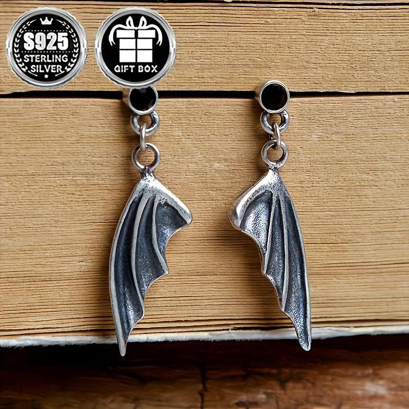 2pcs Devil Wings Dangle Earrings Retro Gothic Style 925 Pure Silvery