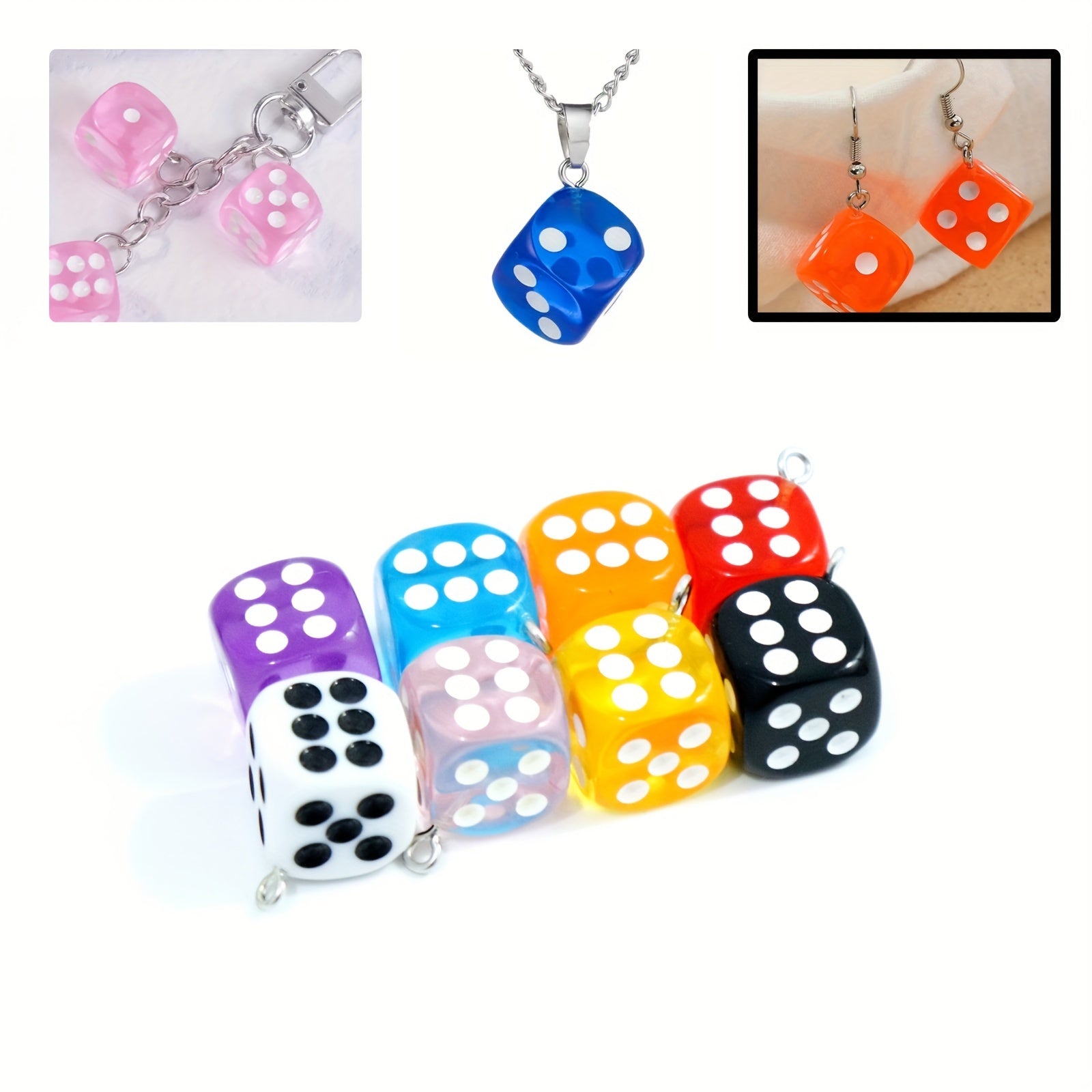 Add a touch of fun to your handmade jewelry with these colorful dice resin pendants. Perfect for earrings, bracelets, necklaces, and other accessories.