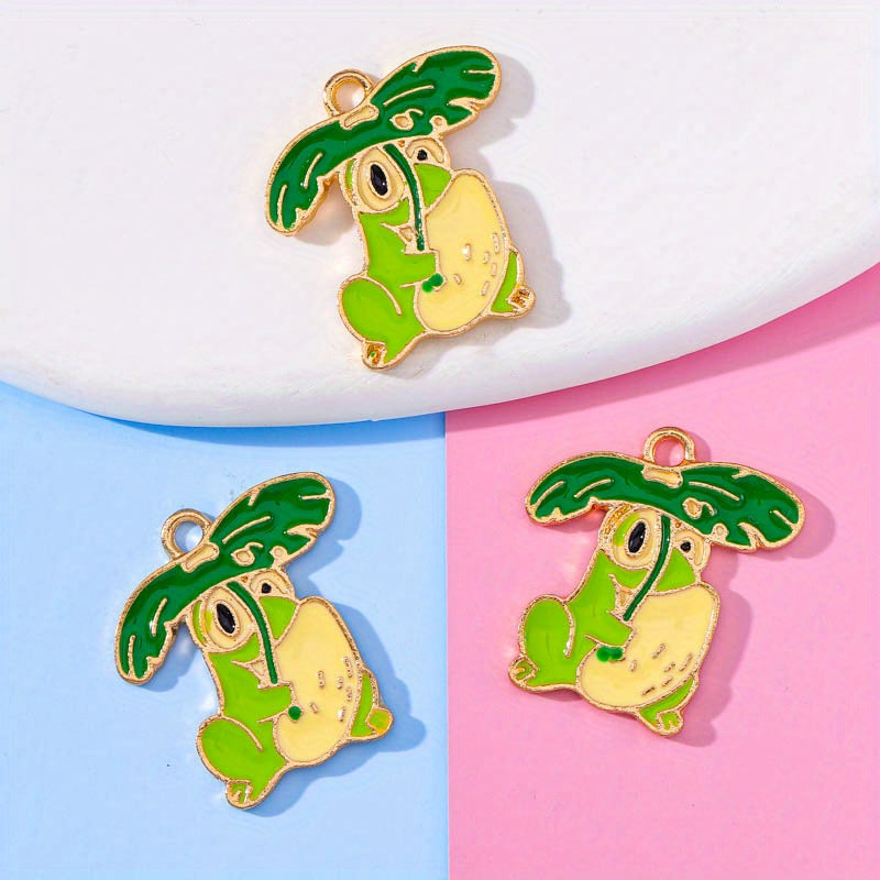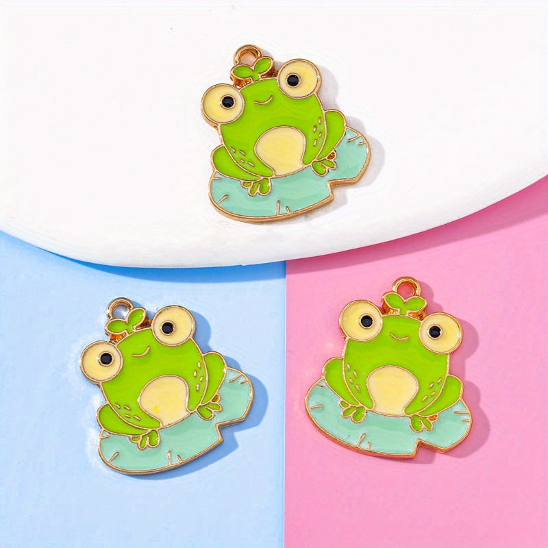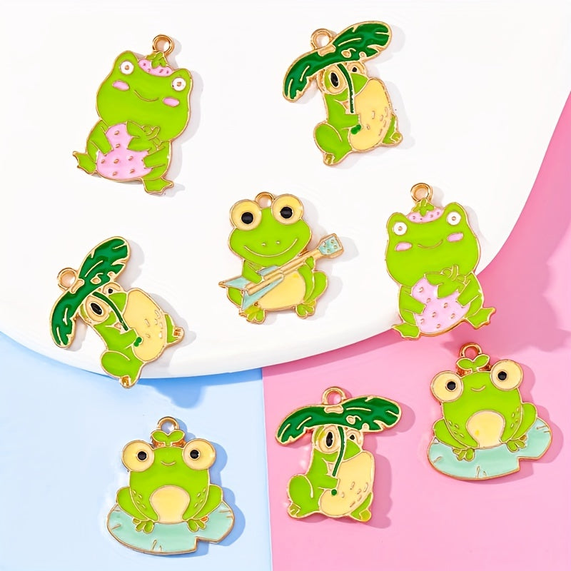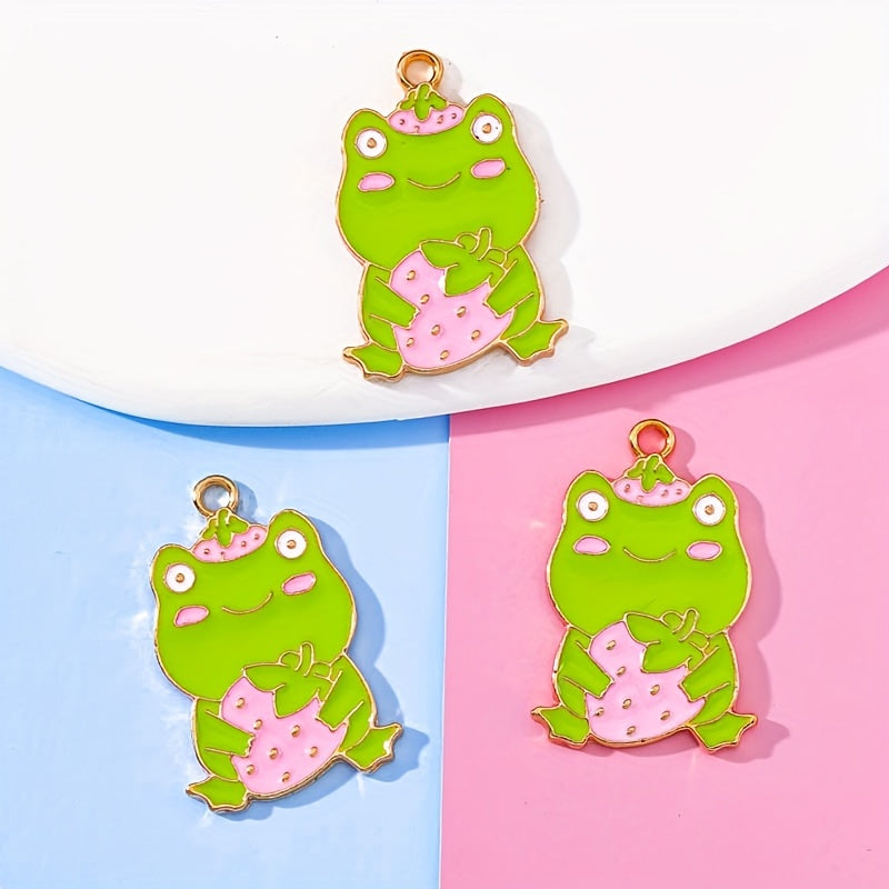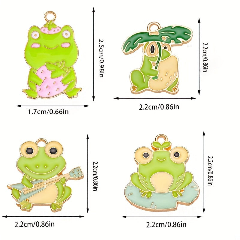 Add a touch of creativity and humor to your accessories with these frog pendants featuring lotus leaves, strawberries, and a guitar. Perfect for making earrings or keychains!