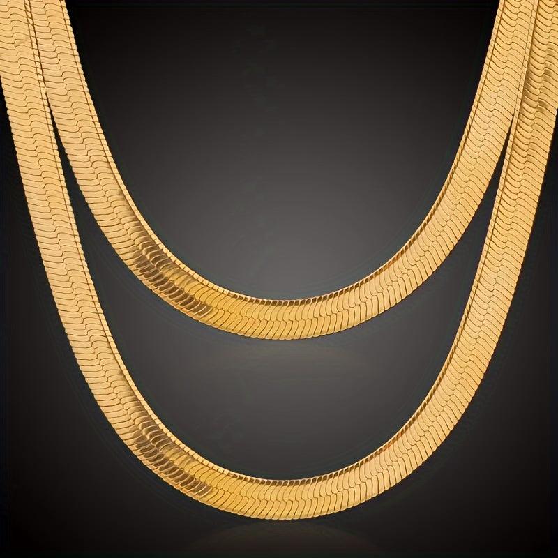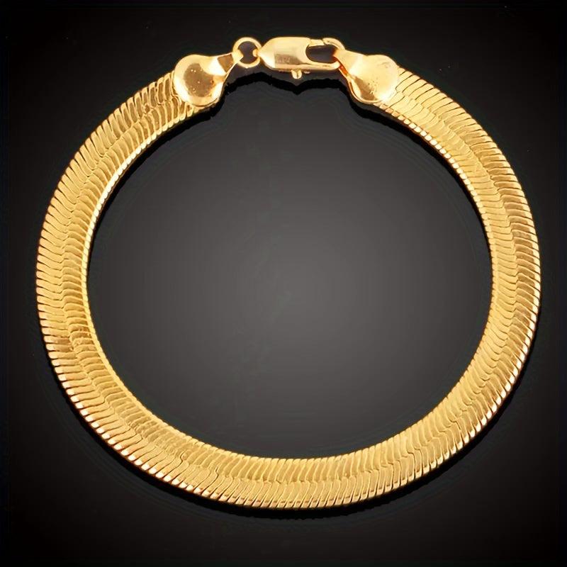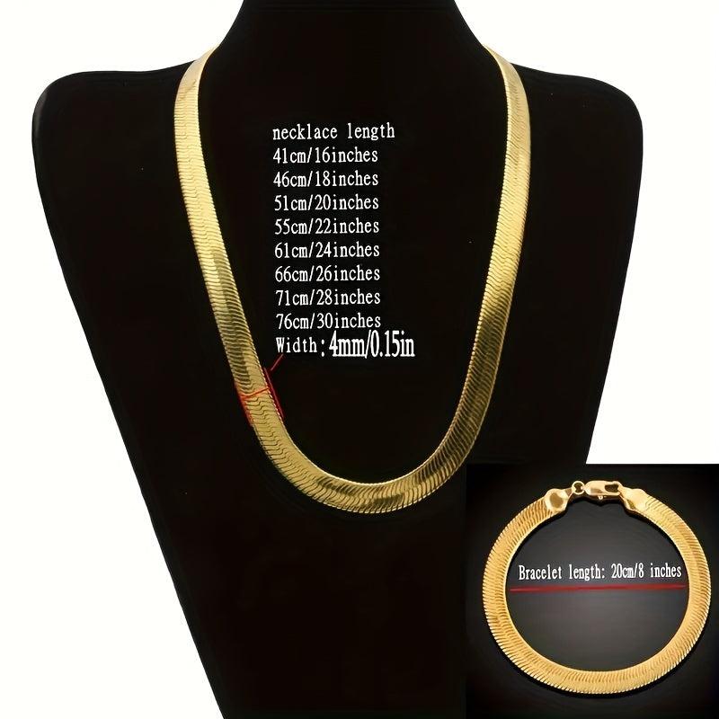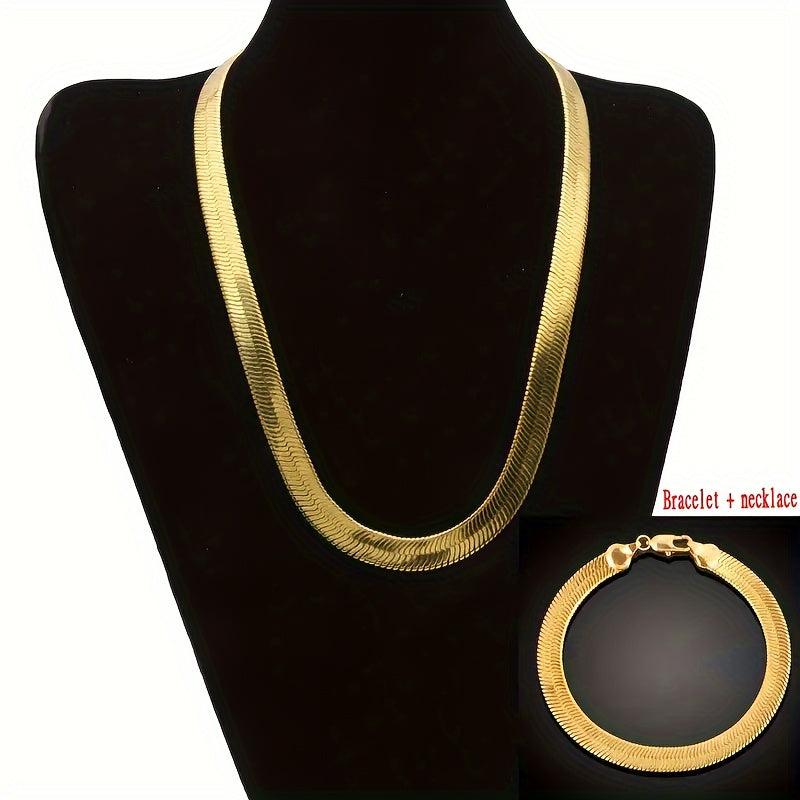 Enhance your party look with this light and stylish set featuring a golden flat chain bracelet and necklace. Ideal for Middle East and Latin America styles.
