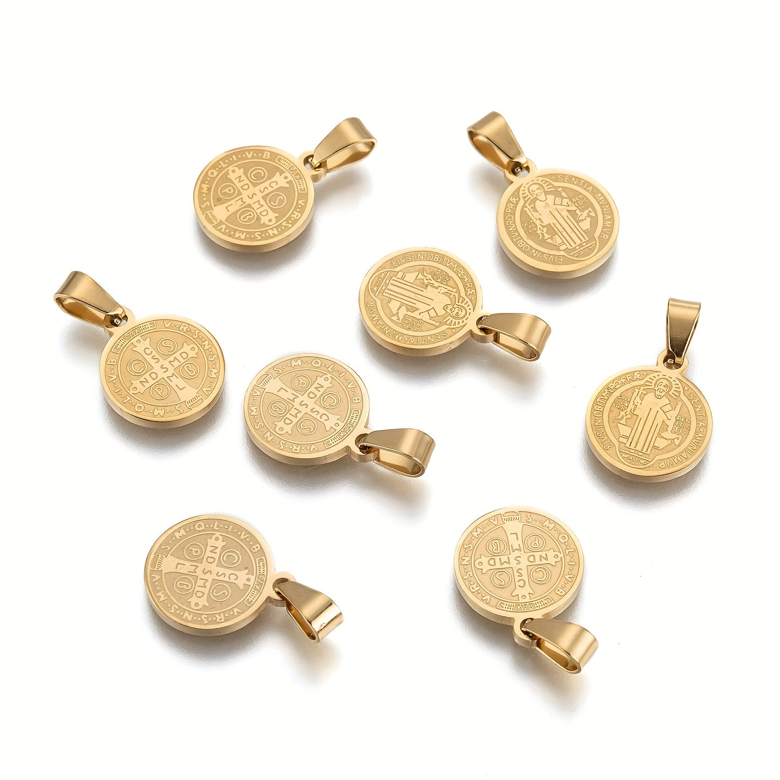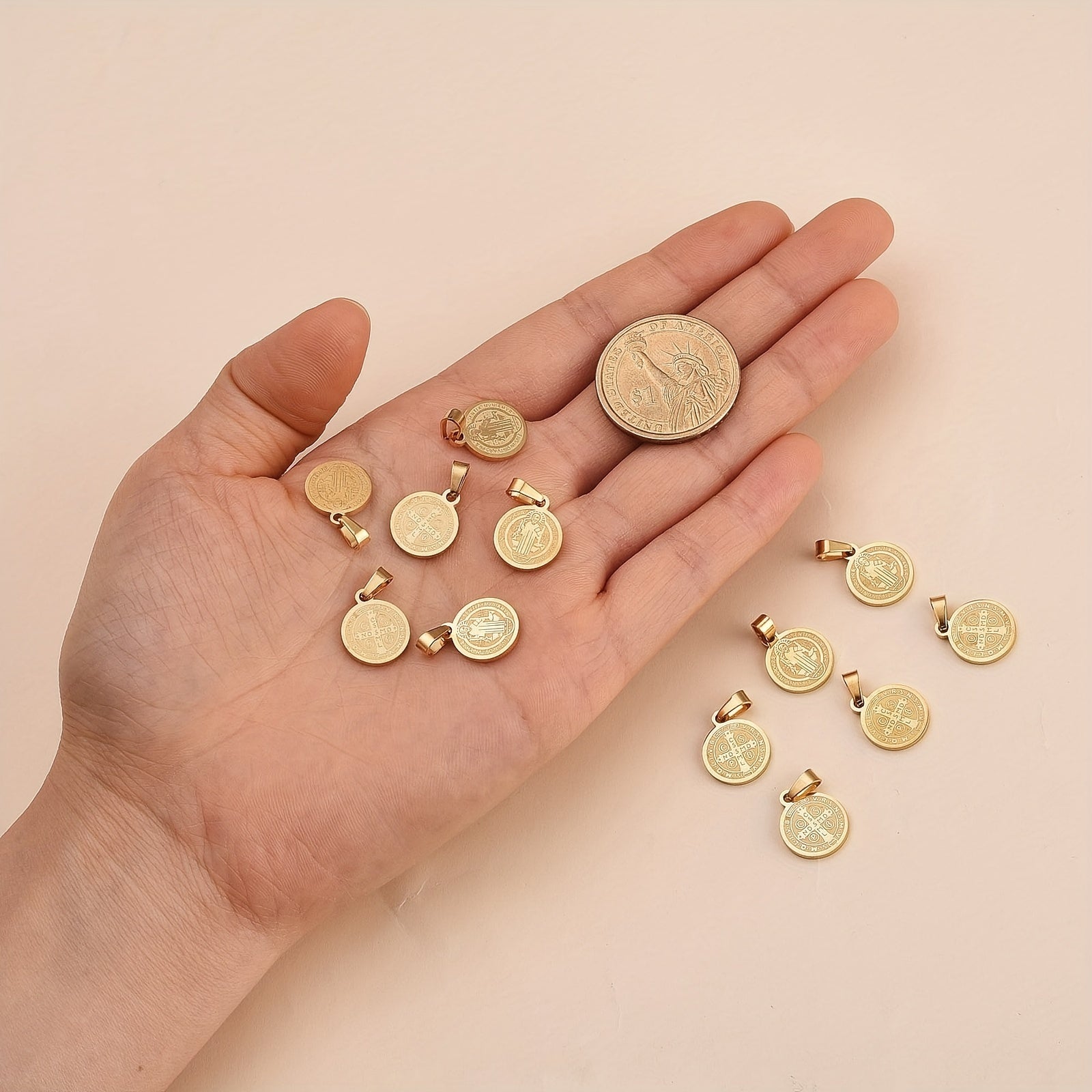 Enhance your DIY jewelry projects with these golden stainless steel clasp pendants. Ideal for necklaces, bracelets, and earrings.