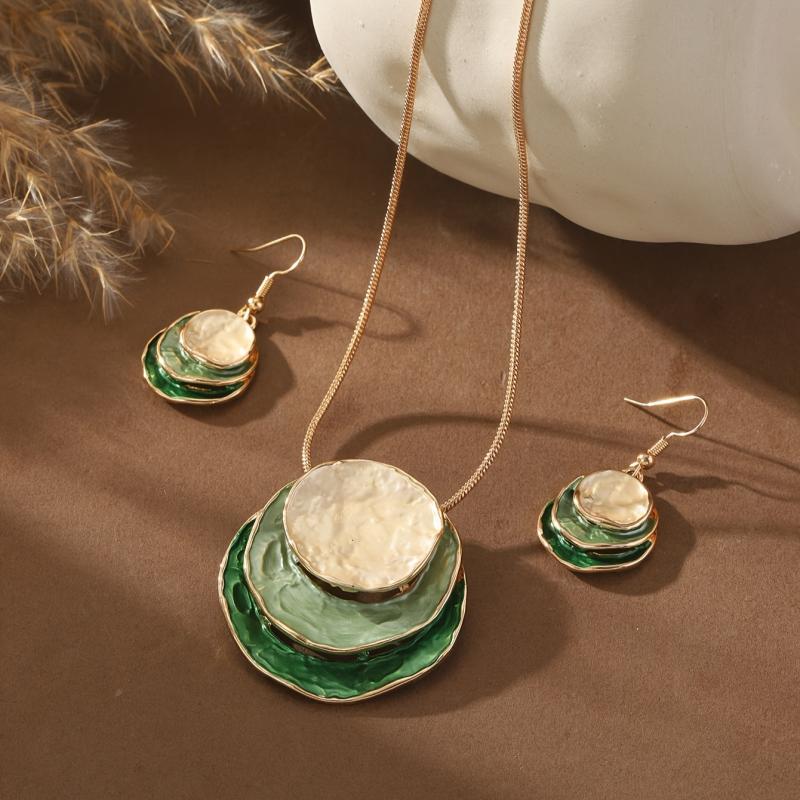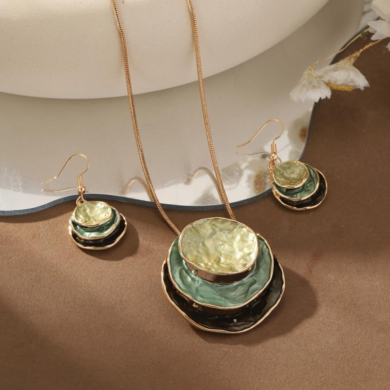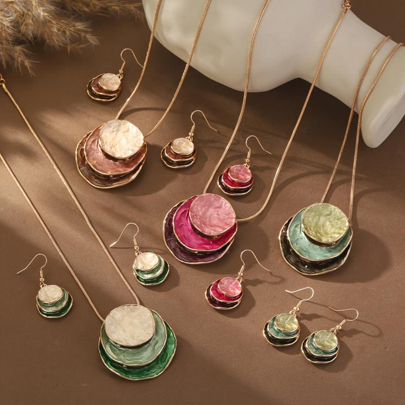 This set includes a pair of earrings and a necklace made of zinc alloy with enamel coating. The adjustable three-layer design adds a unique touch to your outfit.