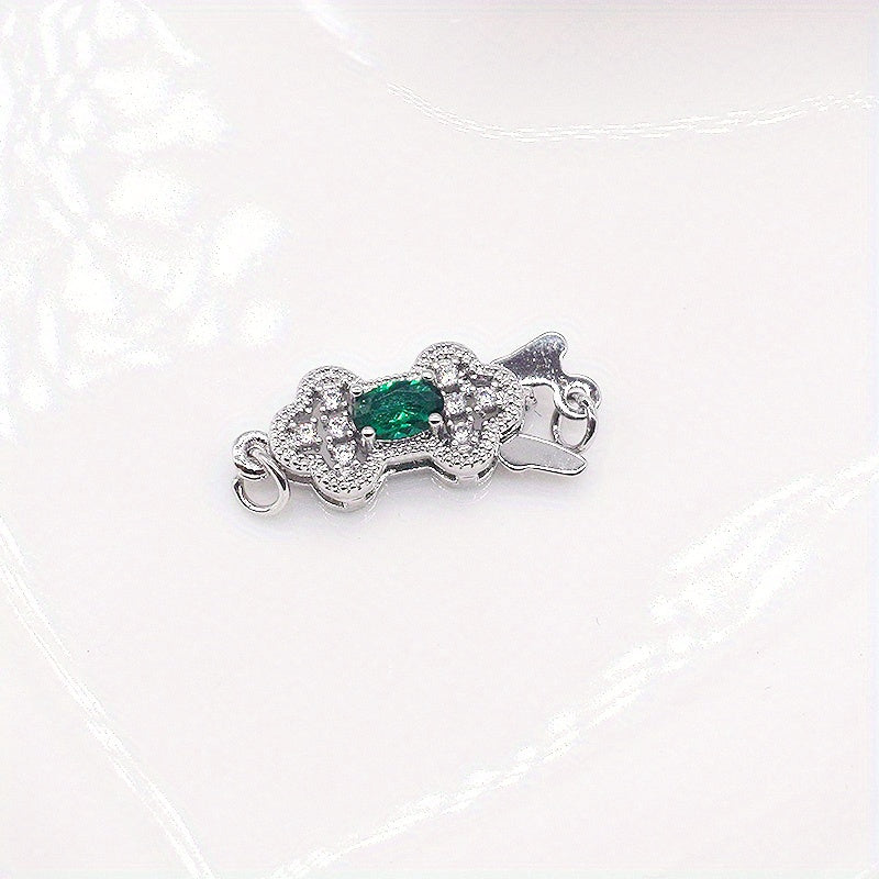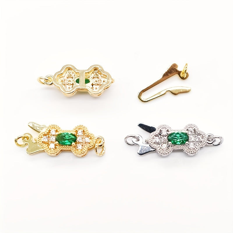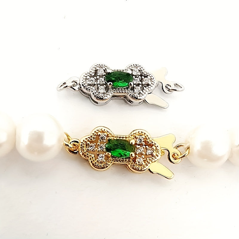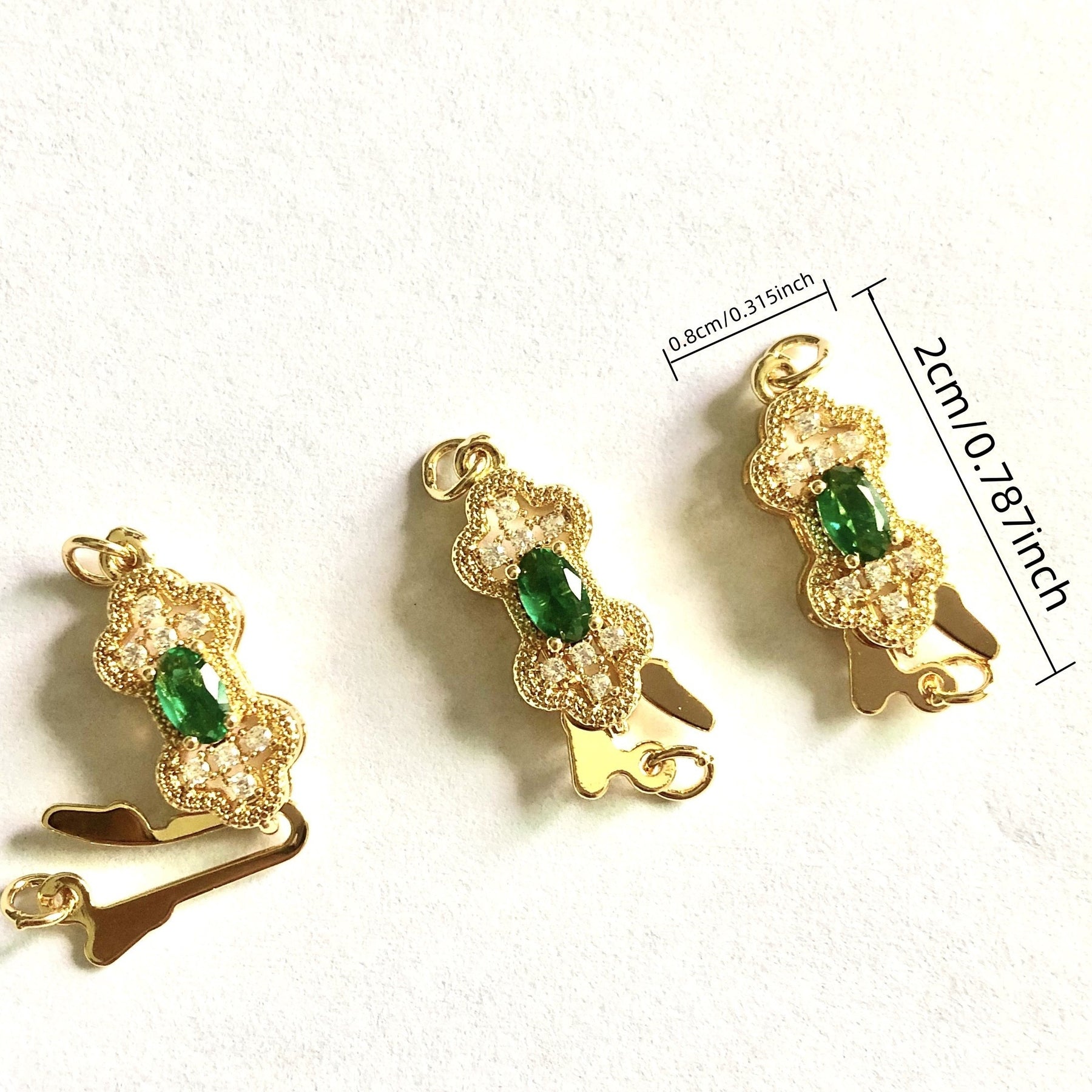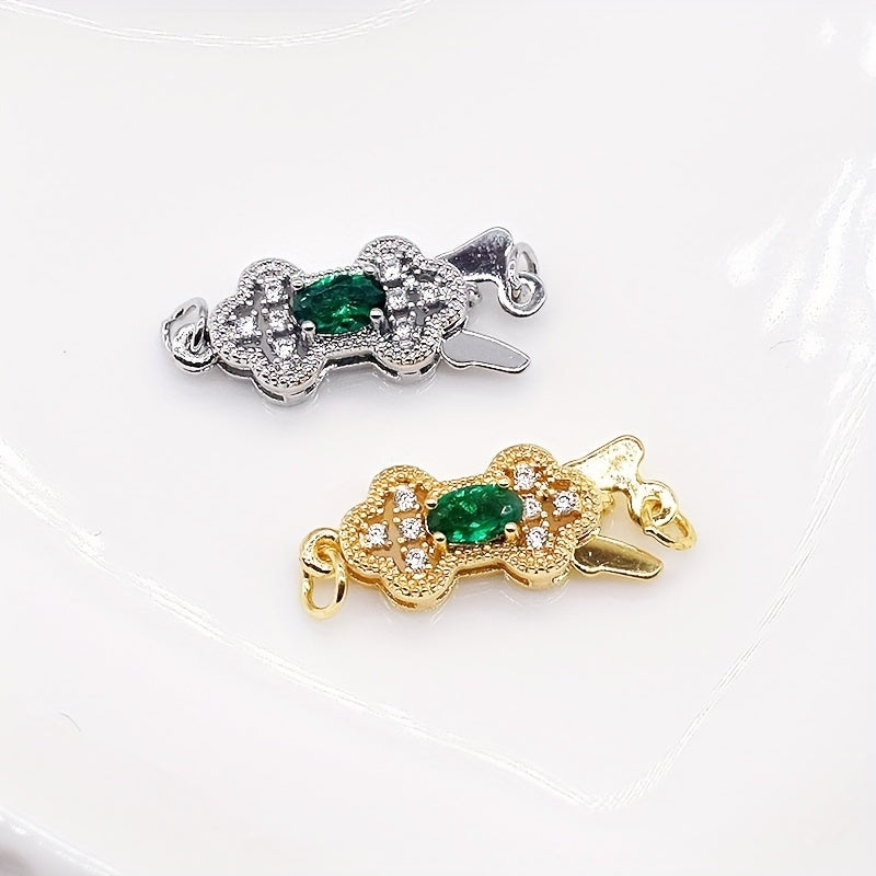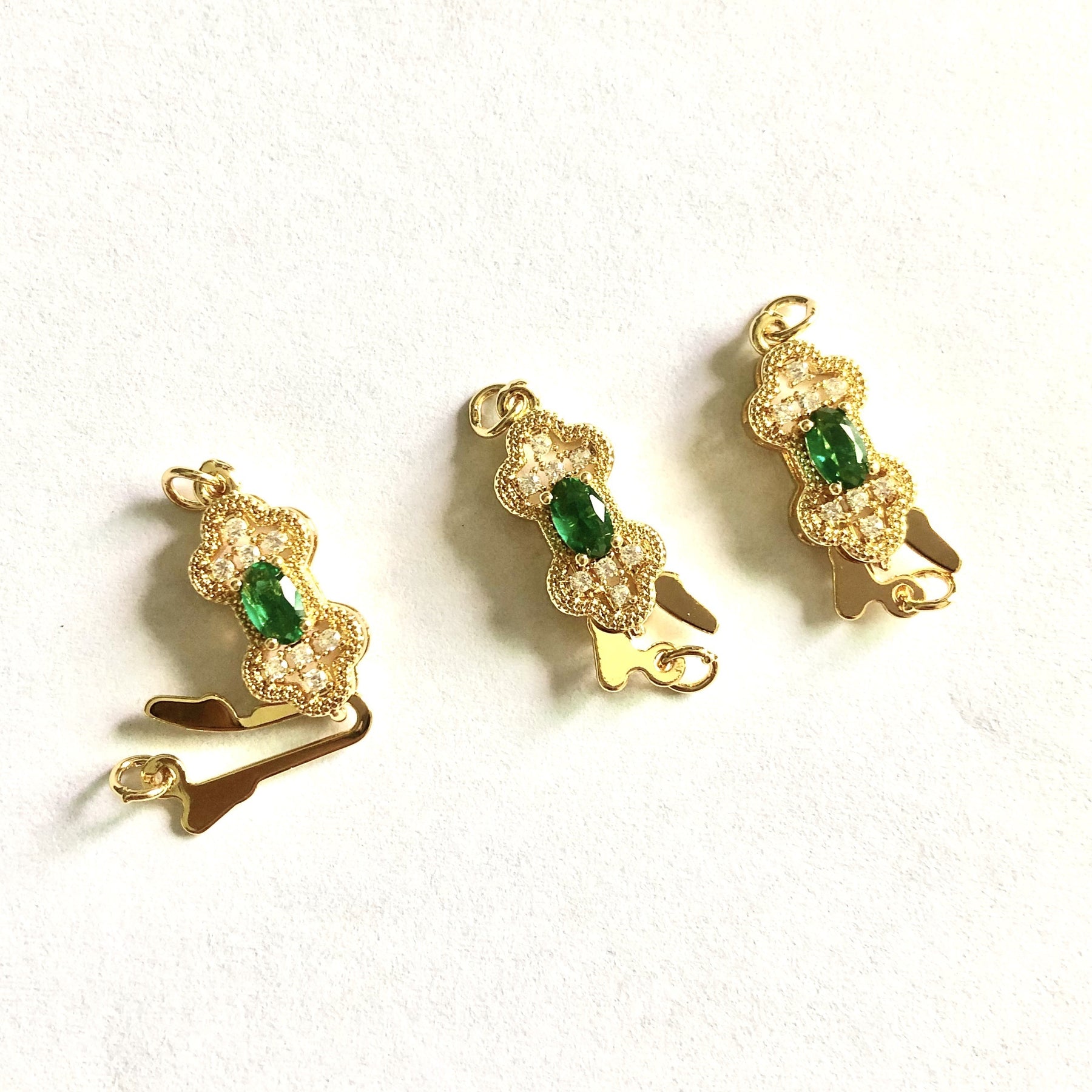 This set includes 2 green rhinestone adorned golden copper connectors for making beautiful necklaces and bracelets. Perfect for DIY jewelry projects.