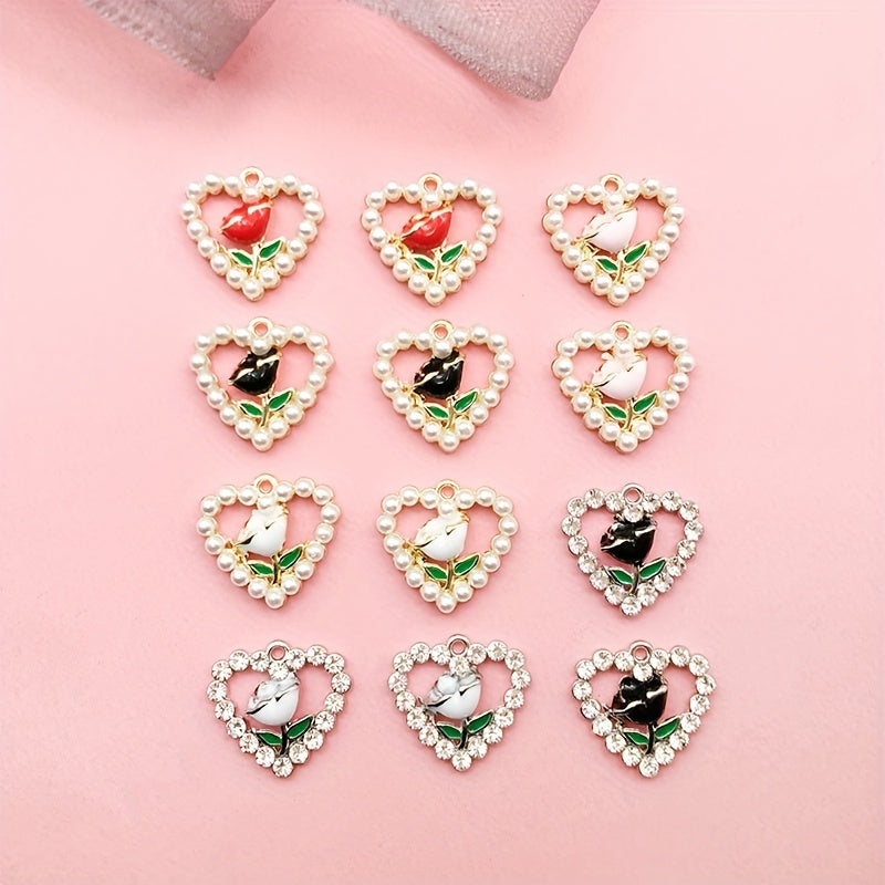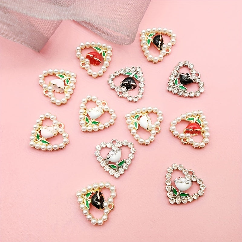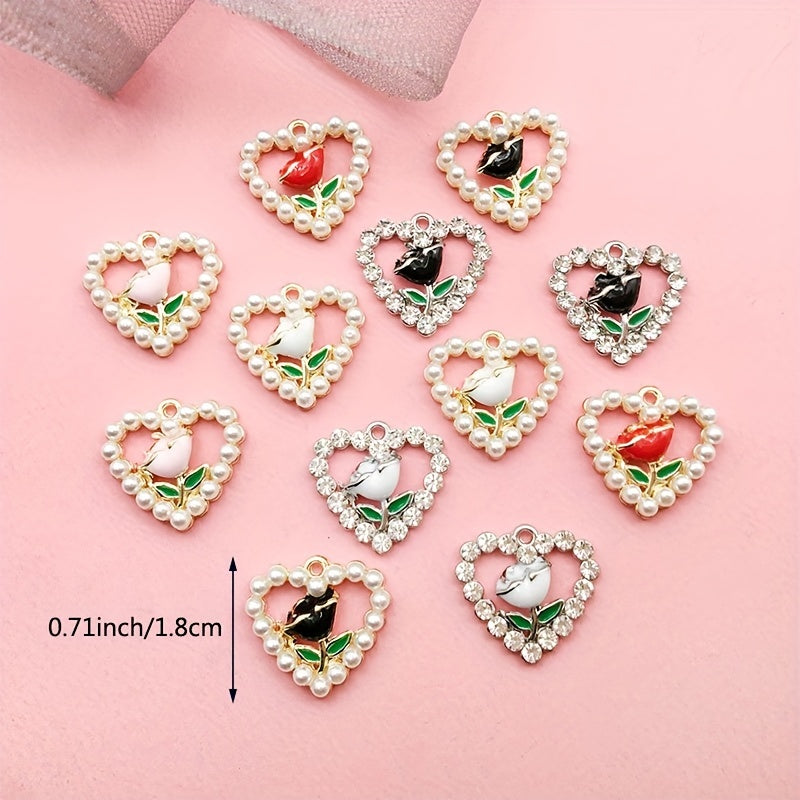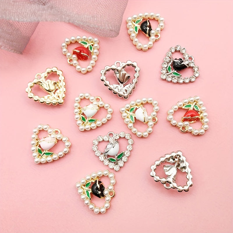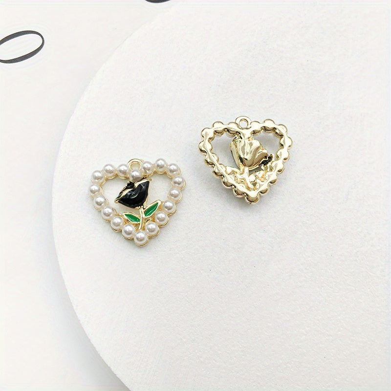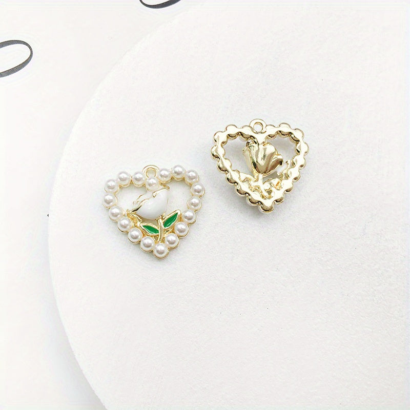 Add a touch of elegance with these heart shape flower faux pearl pendants perfect for crafting earrings, bracelets, anklets, necklaces, or clothing accessories.