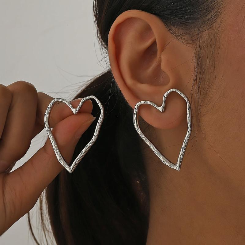 Add a touch of sexy & minimalist style to your daily and party outfits with these heart-shaped stud earrings. Made of high-quality zinc alloy with textured lines, they are perfect for a Valentine's gift.