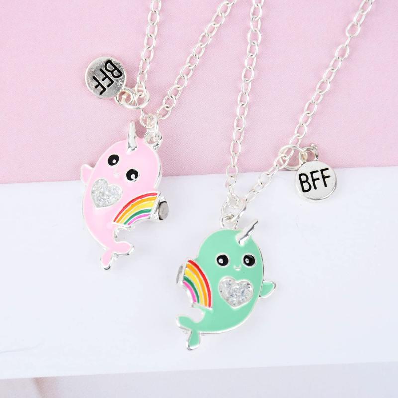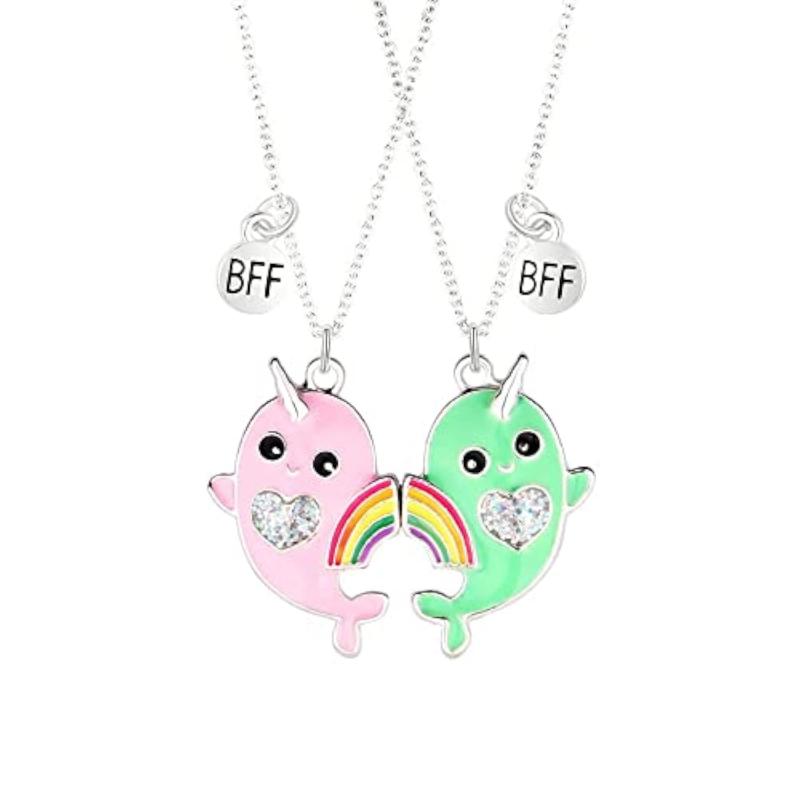 Stay connected with your BFF with this adorable 2-piece necklace set featuring a charming whale design. Share one half with your bestie to create a special bond that will last forever.