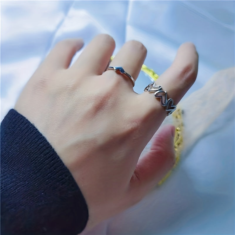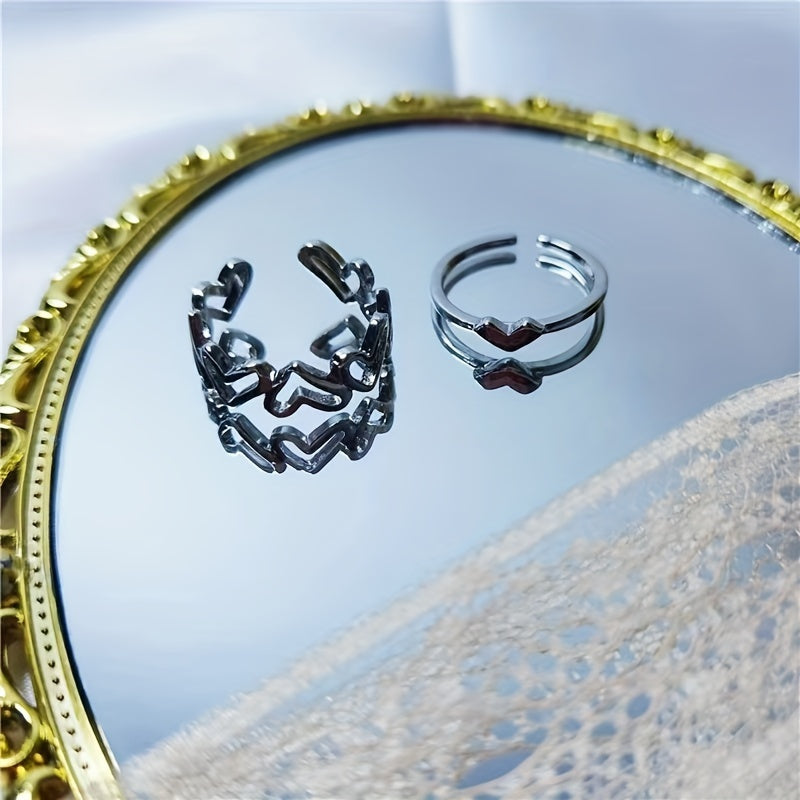 Add a touch of romance to your style with this set of 2 hollow heart-shaped rings. The rings are adjustable to fit most sizes, making them a great gift for your loved one.