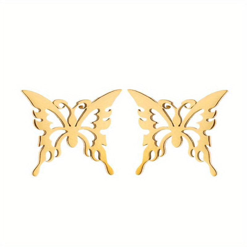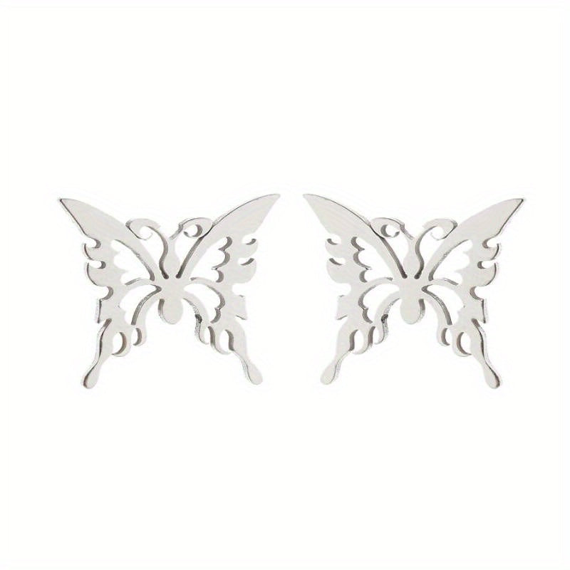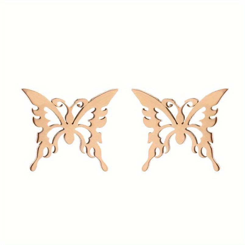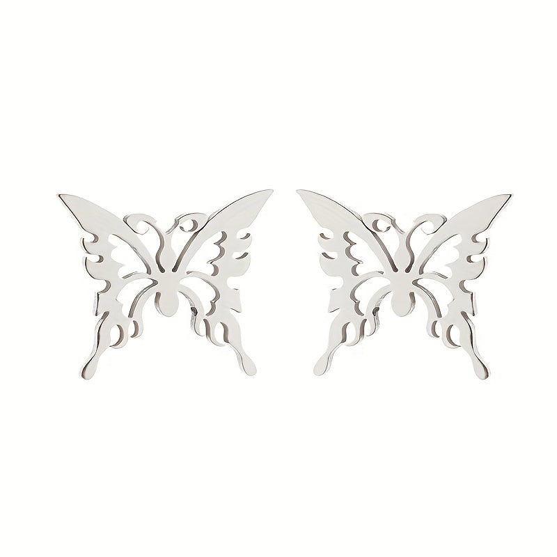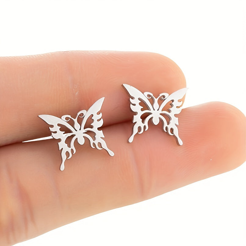 These delicate butterfly-shaped ear studs are made of stainless steel and feature a hollow-out design. They are small and elegant, perfect for everyday wear and special occasions.
