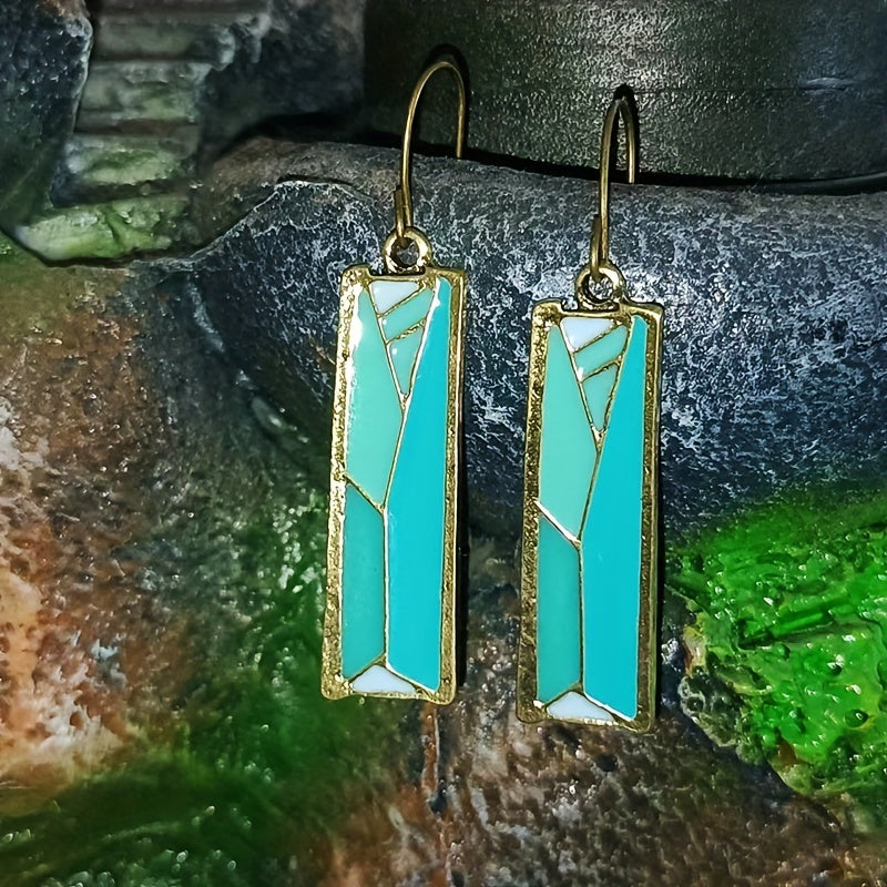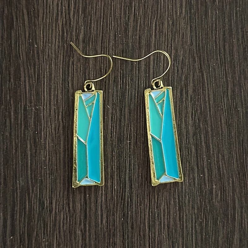 These creative and colorful earrings feature a unique mosaic design. Suitable for both men and women, these retro earrings add a touch of style to any outfit.