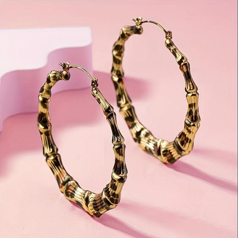 These stylish hoop earrings are made of iron and feature a retro bamboo joint circle design. Perfect for daily wear, parties, and performances, these earrings add a touch of vintage charm to any outfit.