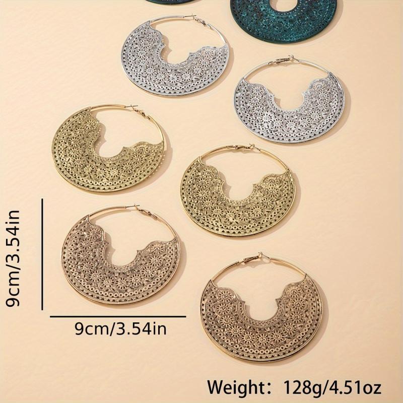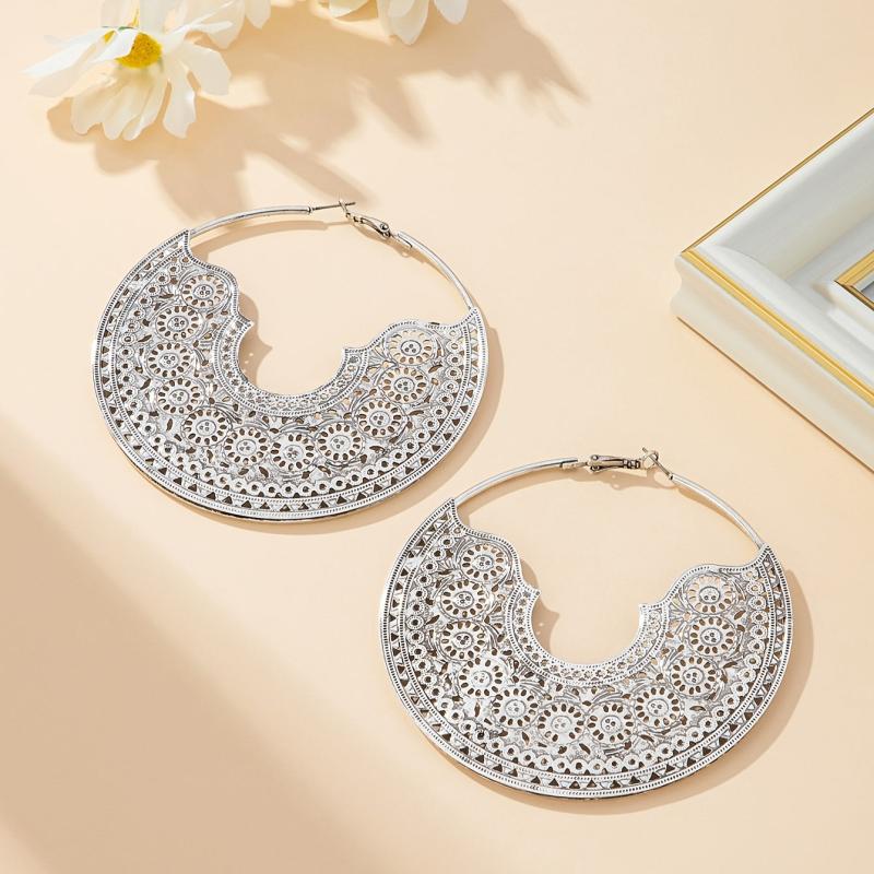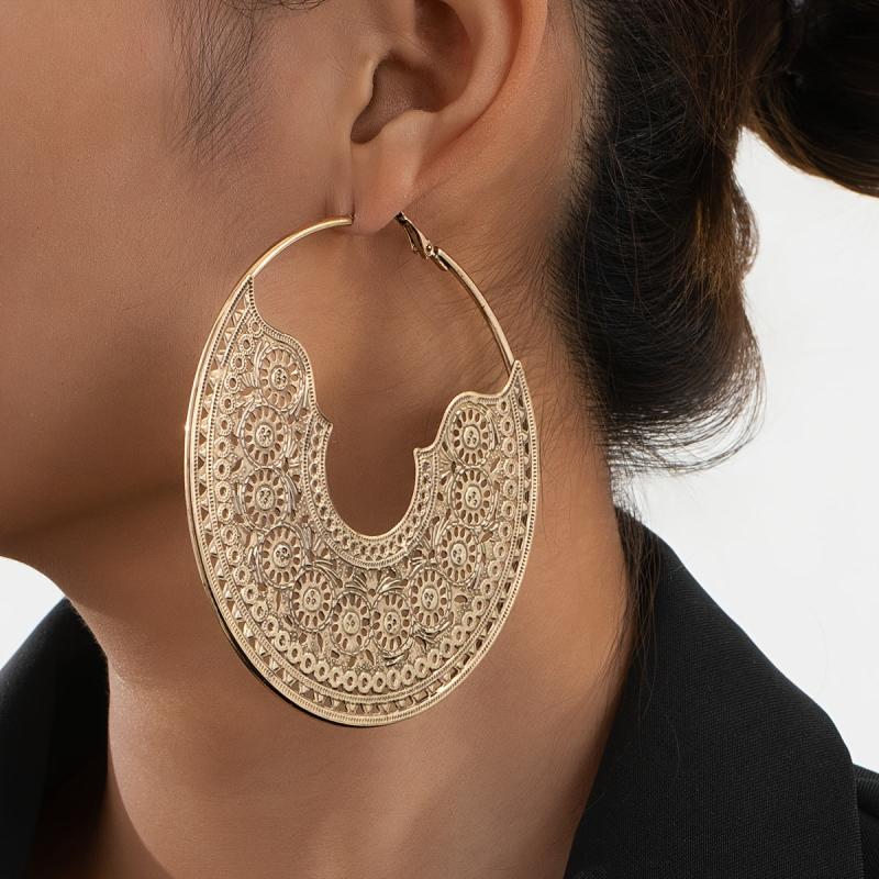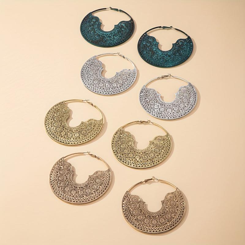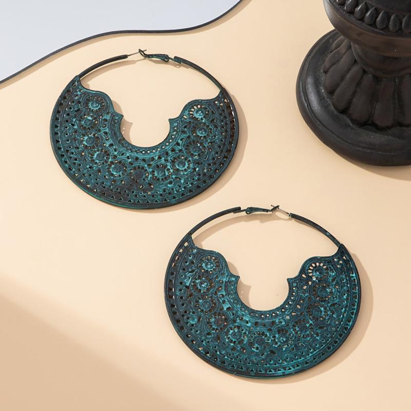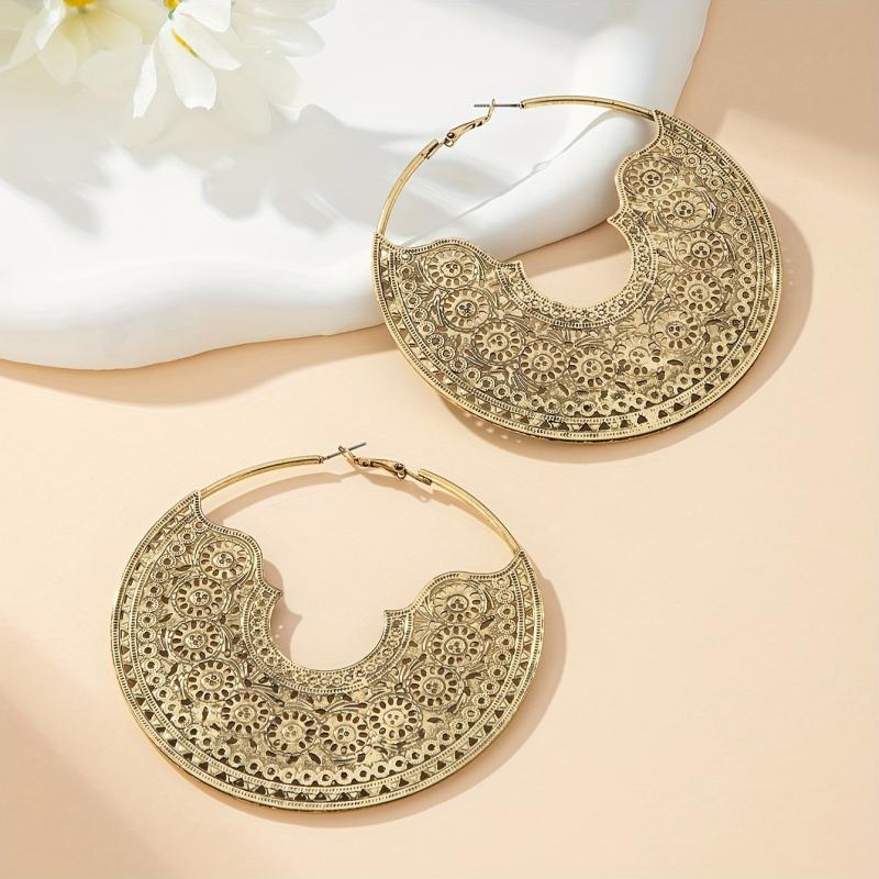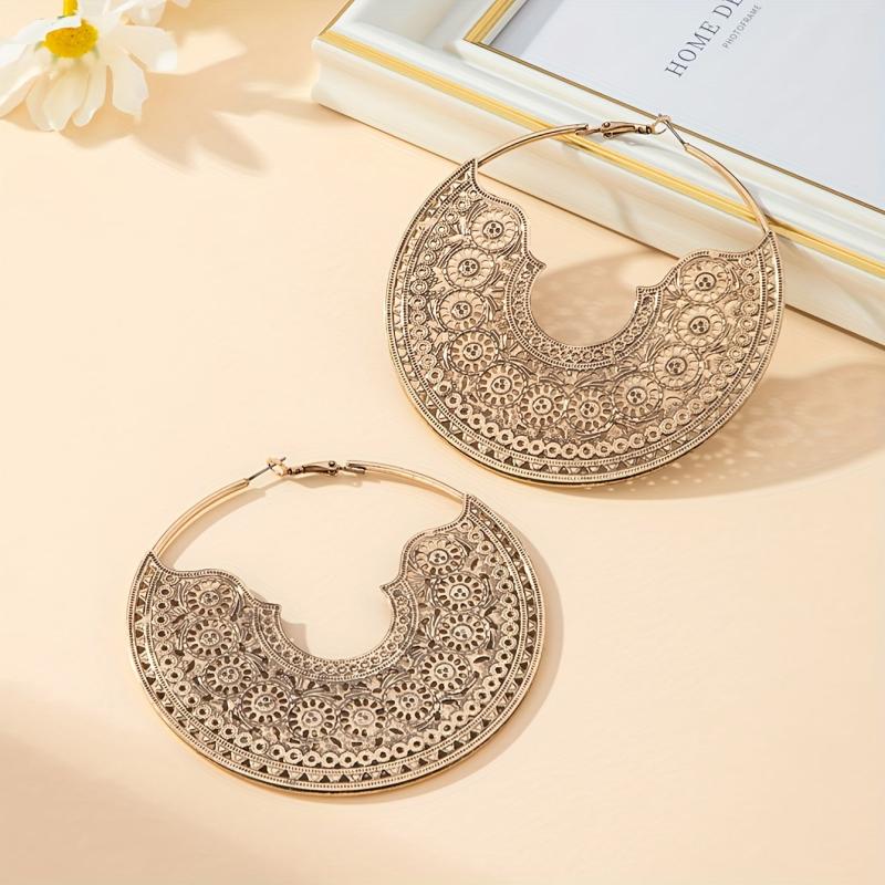 Add a touch of bohemian flair to your outfit with these vintage-inspired metal earrings. Perfect for daily wear or special occasions.
