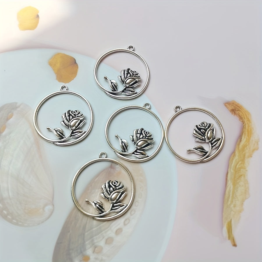 Add a touch of elegance with these silvery rose pattern hollow pendants. Perfect for creating your own earrings, bracelets, necklaces, and other accessories.