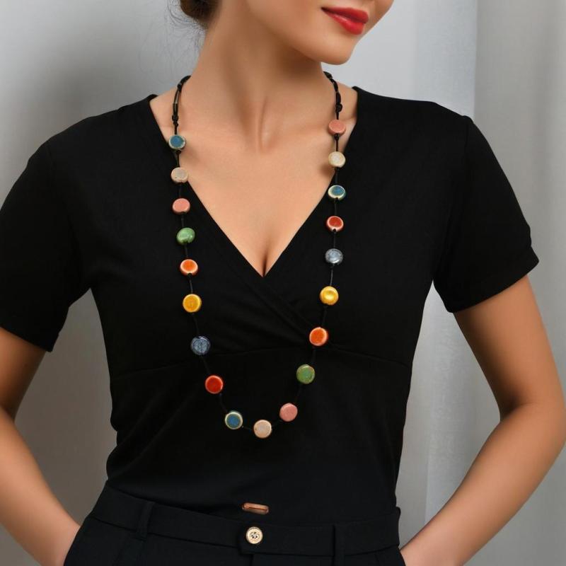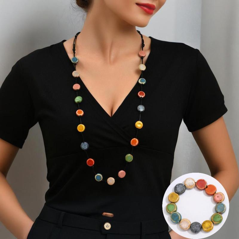 Elevate your style with this retro ethnic sweater chain set. Crafted from ceramic beads, it adds a touch of fashion to any outfit. Perfect for gifting!
