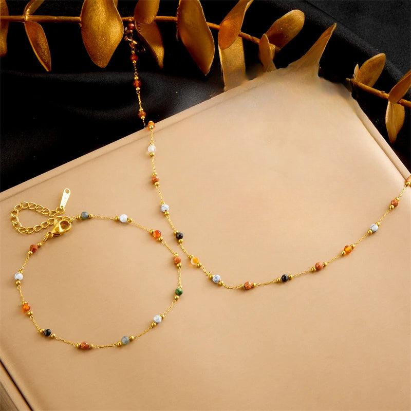 2pcs Stainless Steel Bohemian Style Stone Necklace Bracelet Set