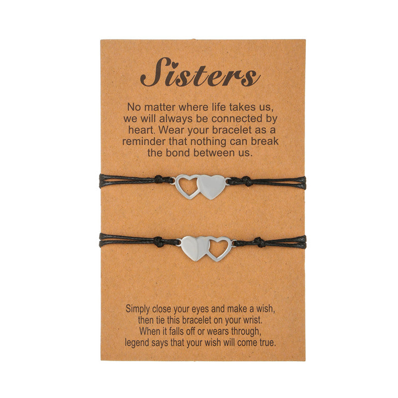 This 2-piece set features stainless steel bracelets with hollow love charms, hand-woven design for a stylish look.