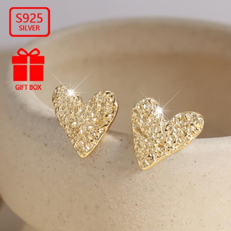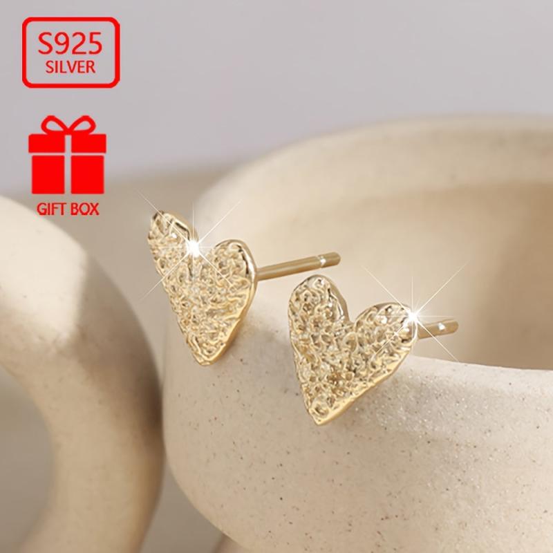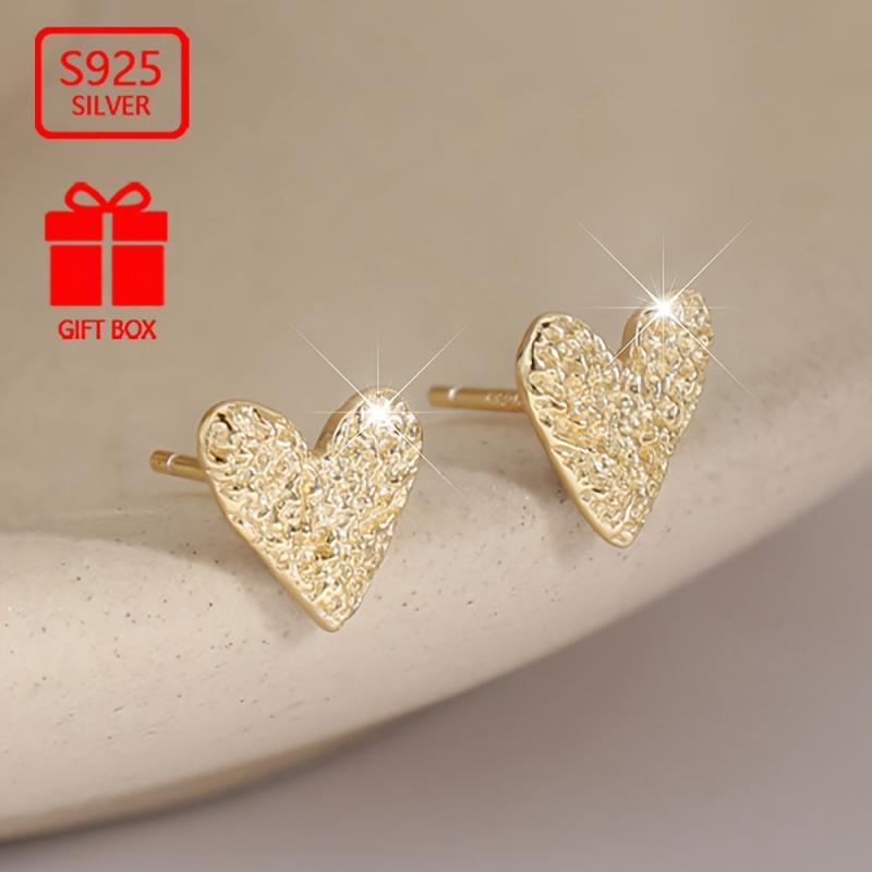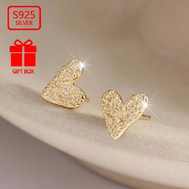 These stud earrings are made of 925 sterling silver with a textured heart design, perfect for daily wear, parties, and gatherings. They are versatile and can be worn all season long.