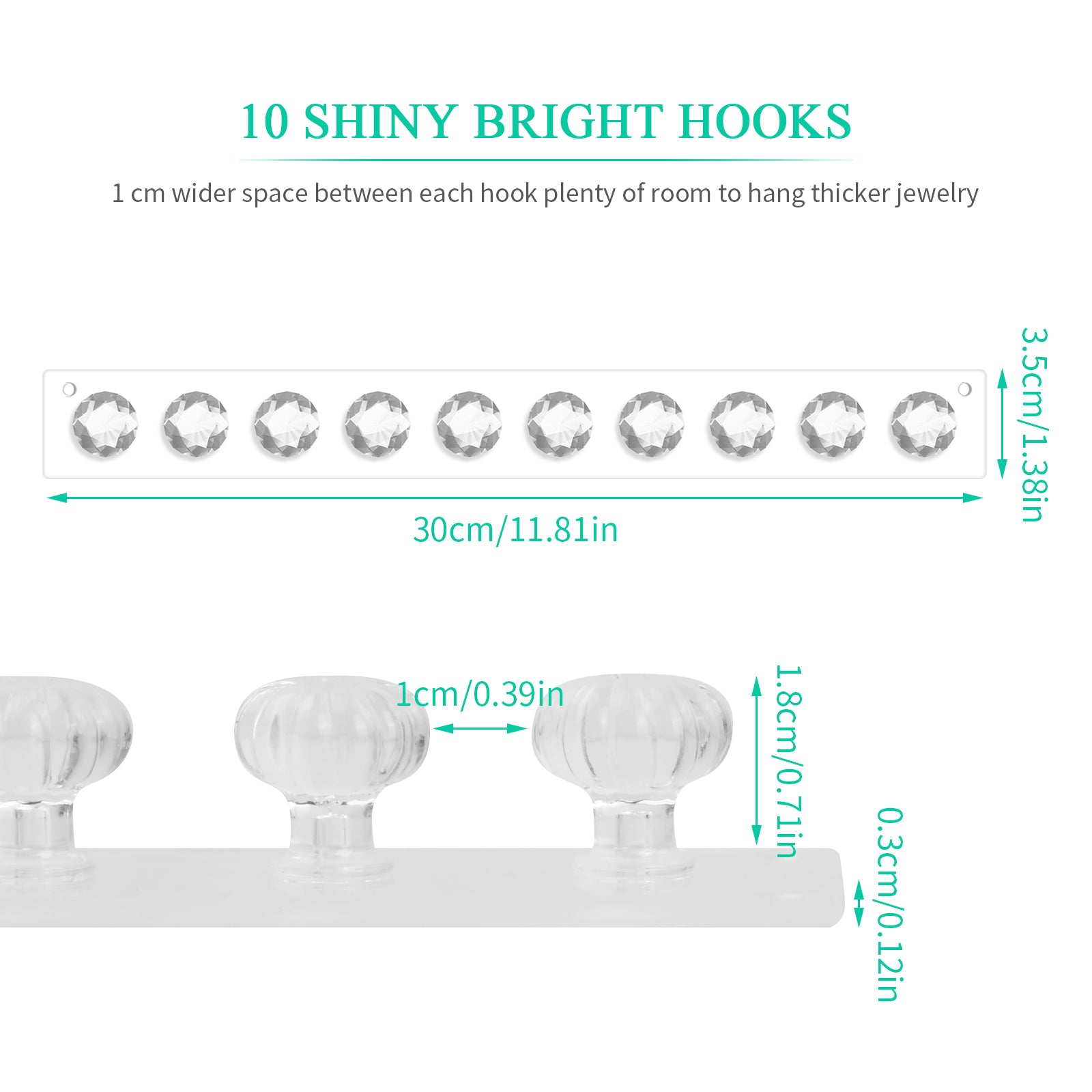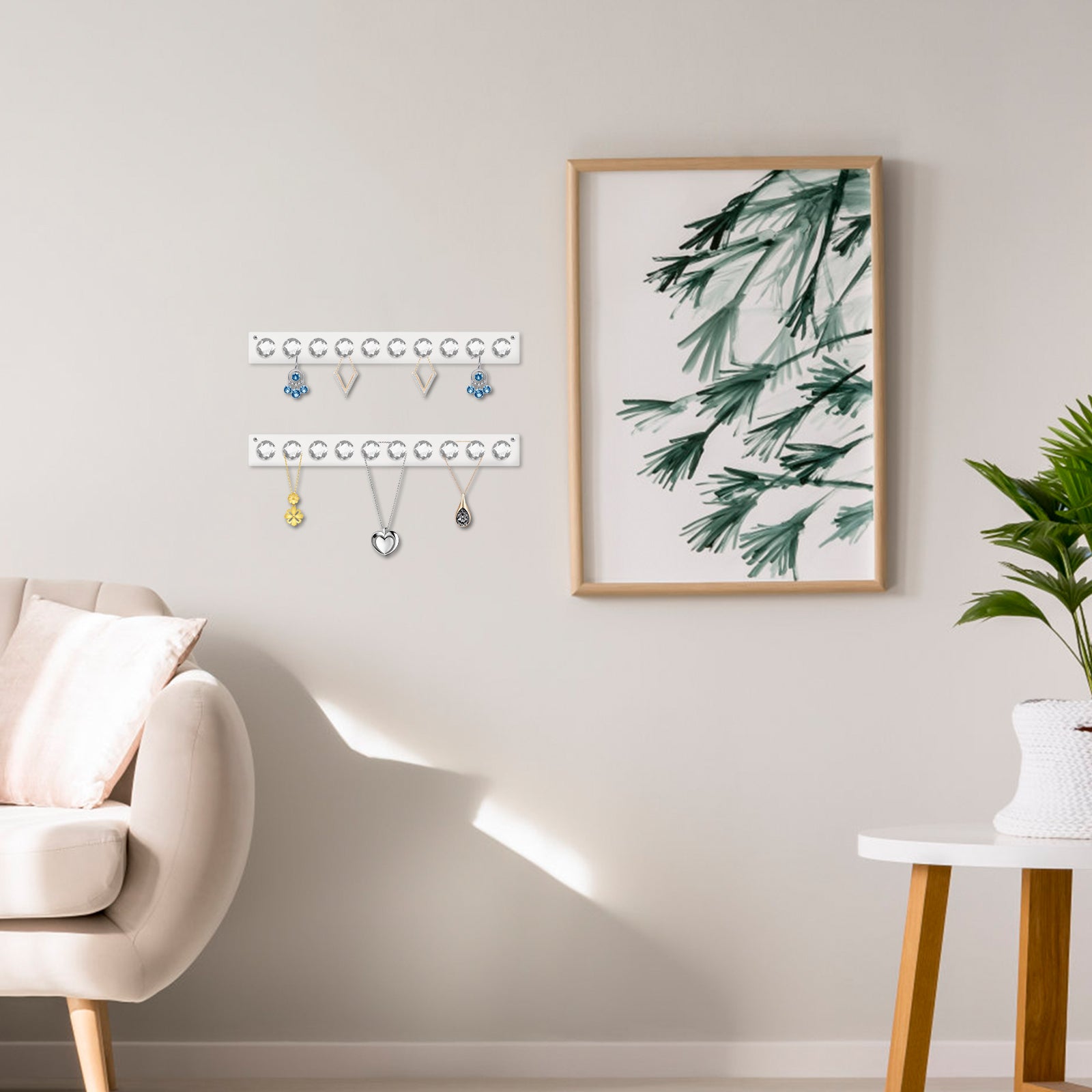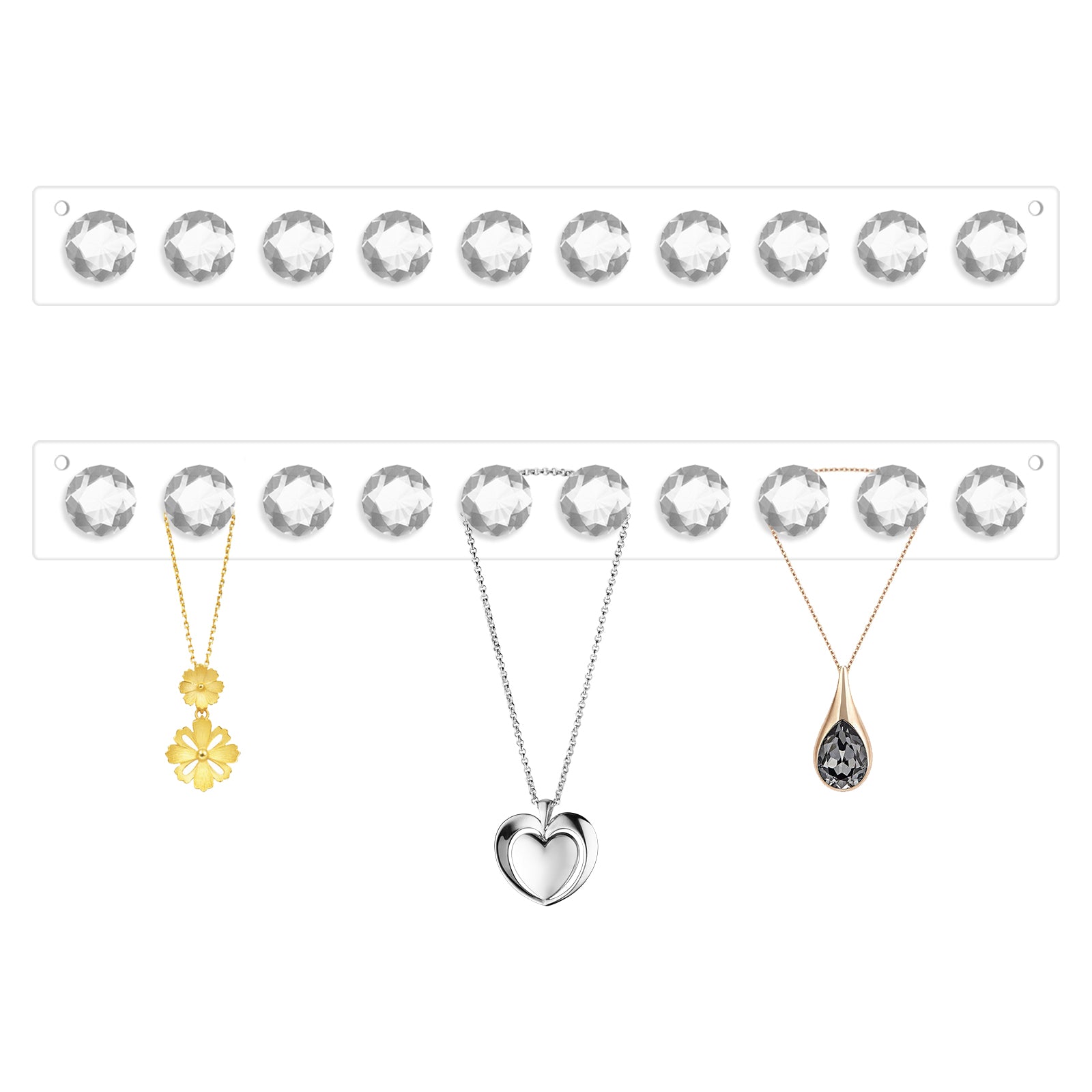 This set of 2 wall-mounted acrylic necklaces holders provide a stylish and practical solution for displaying and storing your jewelry. The transparent design allows for easy viewing of your necklaces.