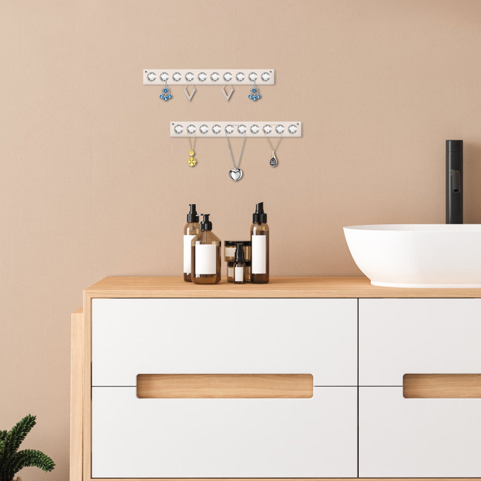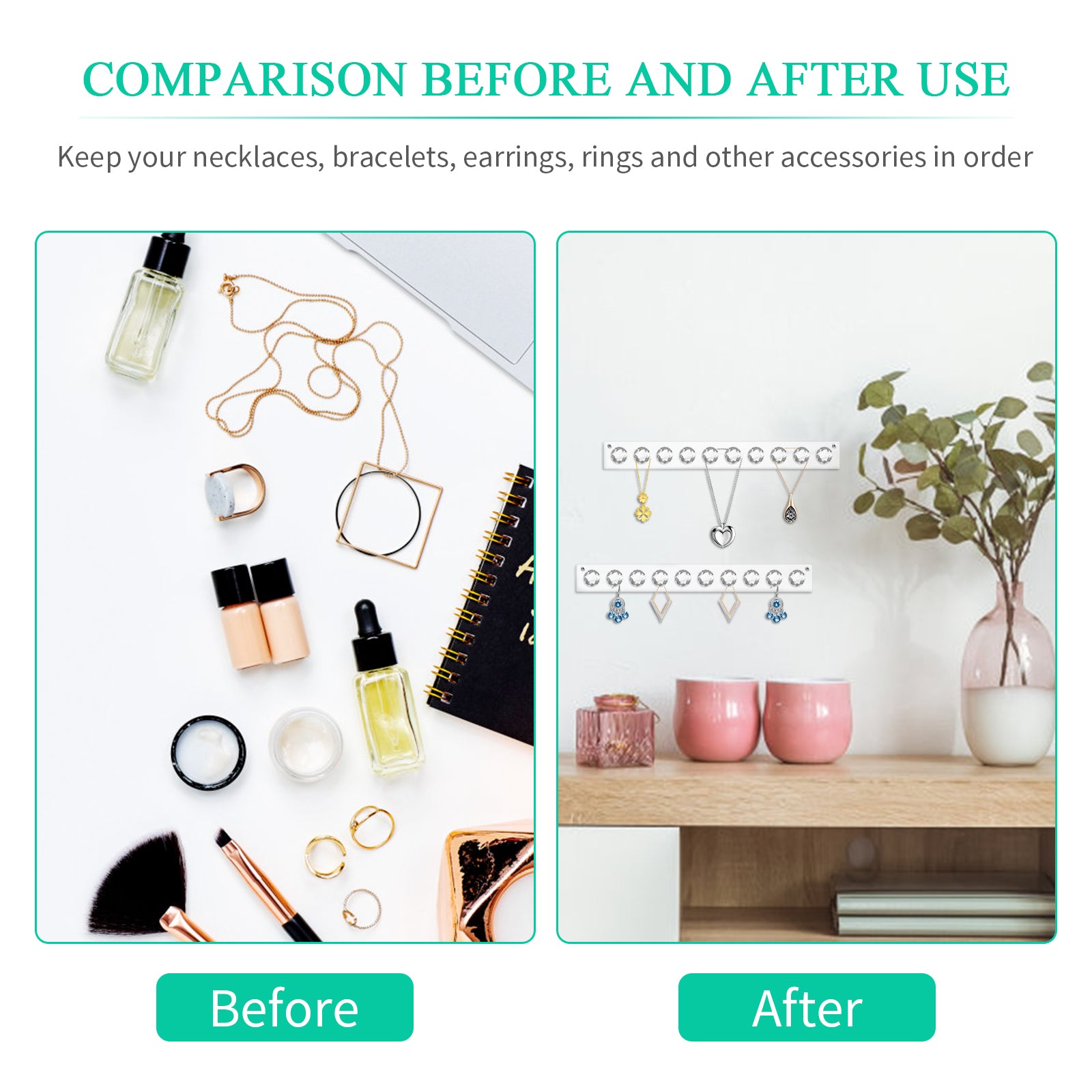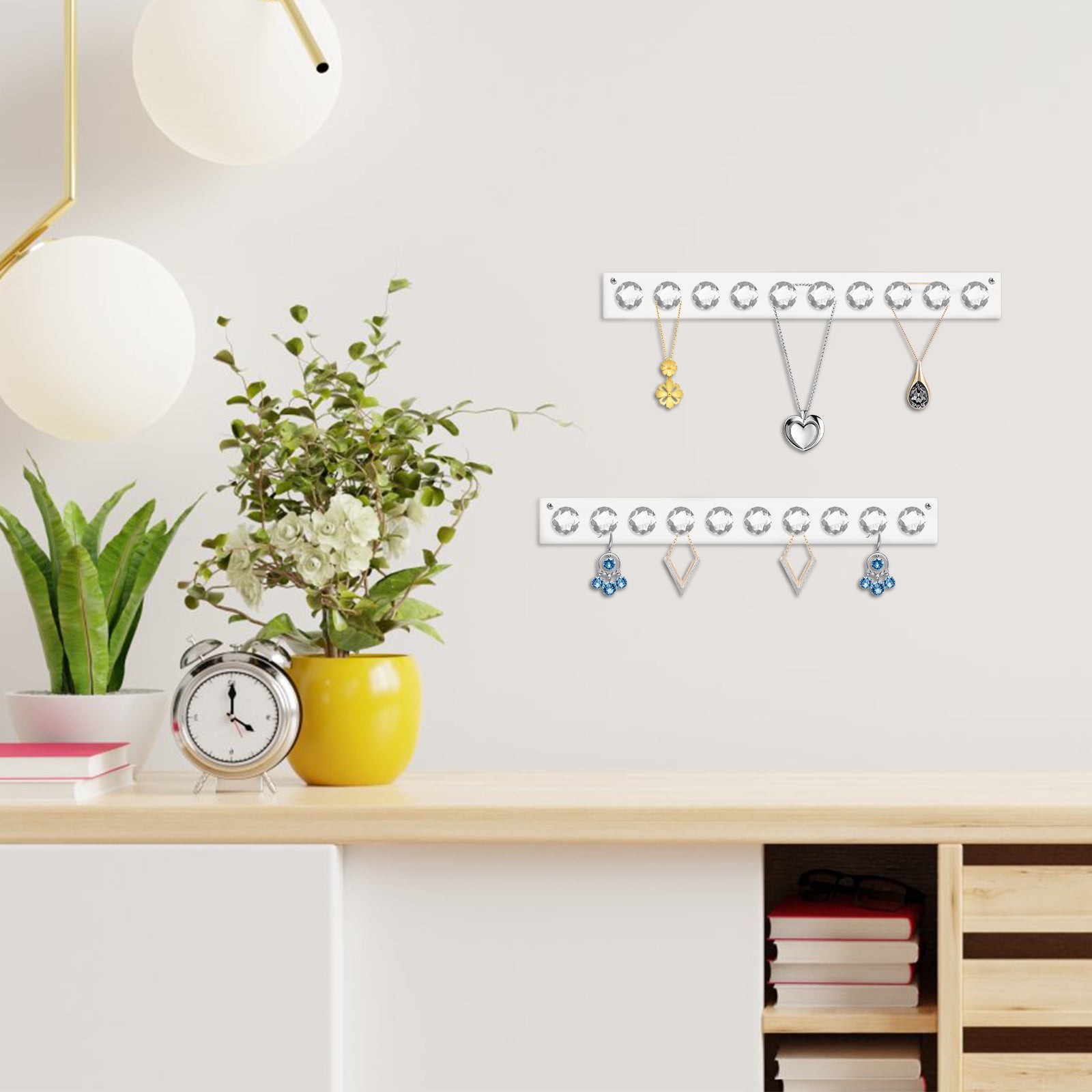 This set of 2 wall-mounted acrylic necklaces holders provide a stylish and practical solution for displaying and storing your jewelry. The transparent design allows for easy viewing of your necklaces.