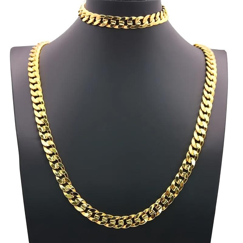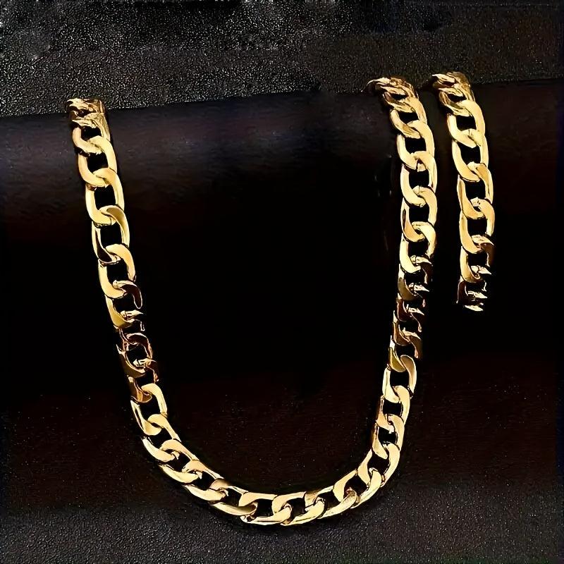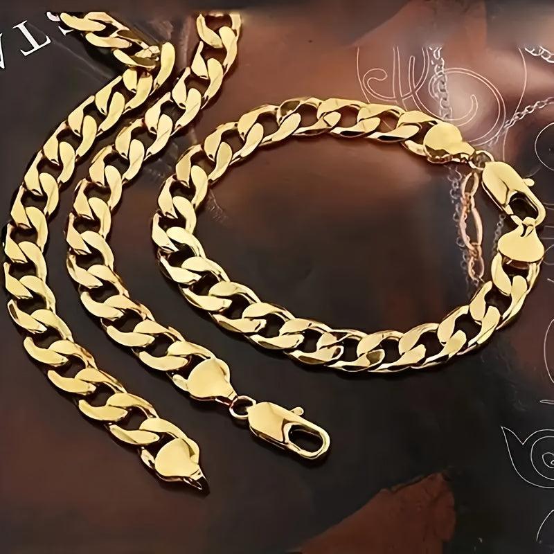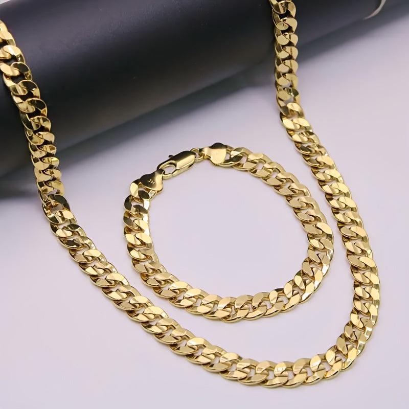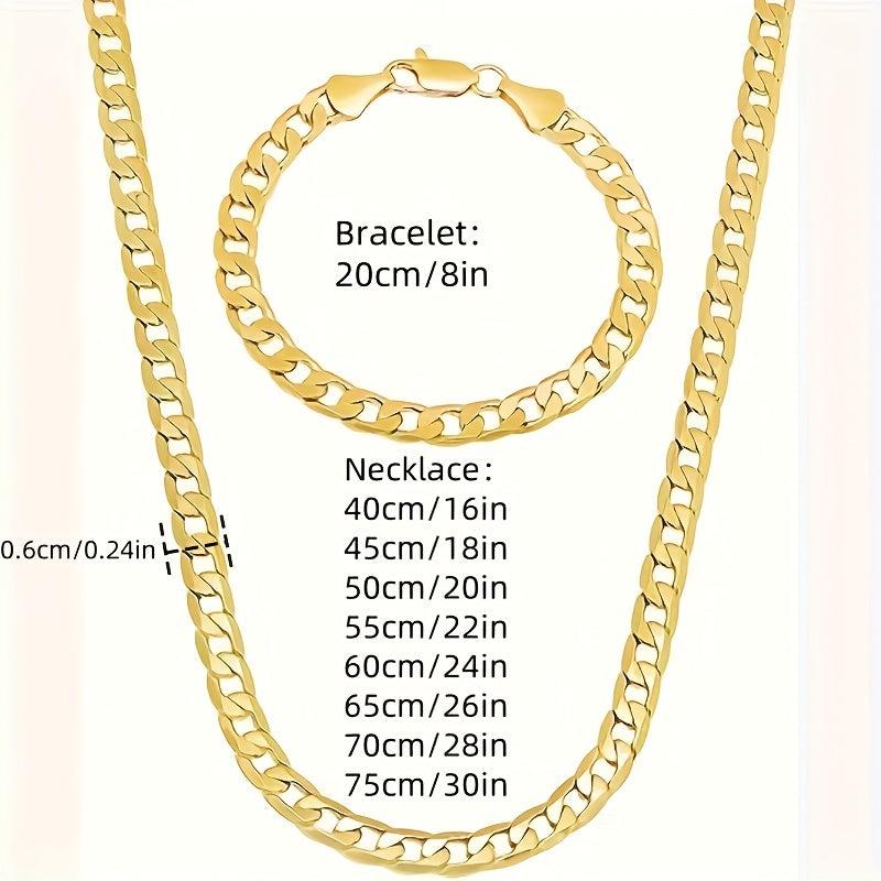 Elevate your look with this charming jewelry set featuring a Cuban chain necklace and bracelet. The retro style design is perfect for all seasons and versatile enough to wear with any outfit.