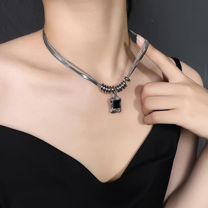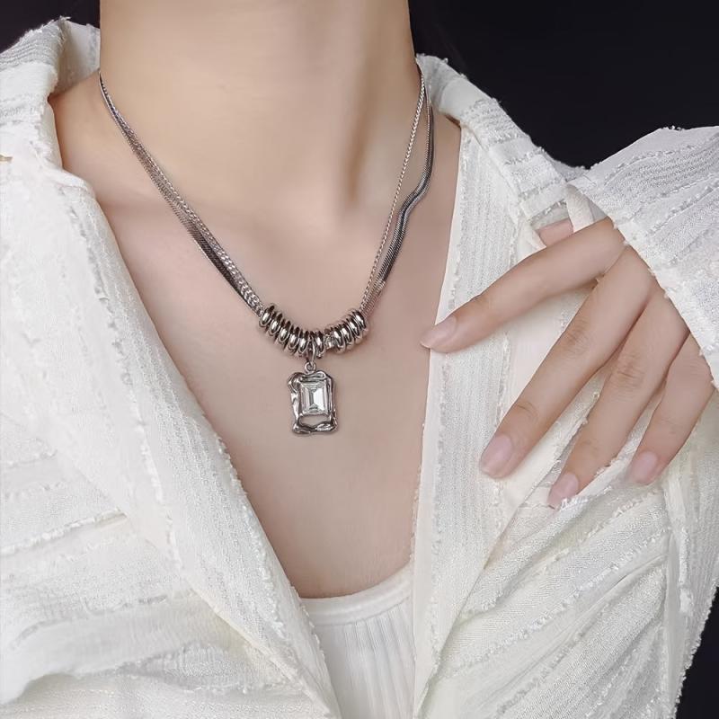 Elevate your style with this set of 2 sleek pendant necklaces featuring cubic zirconia accents. Made of high-quality titanium steel, they are perfect for daily wear or special occasions. An ideal gift for women of all ages.
