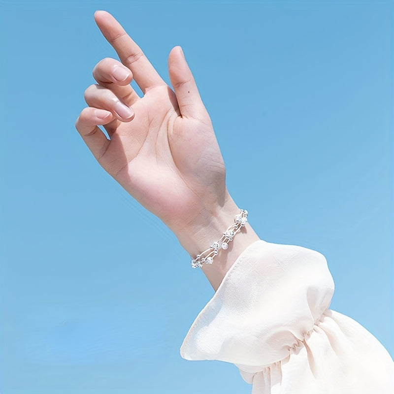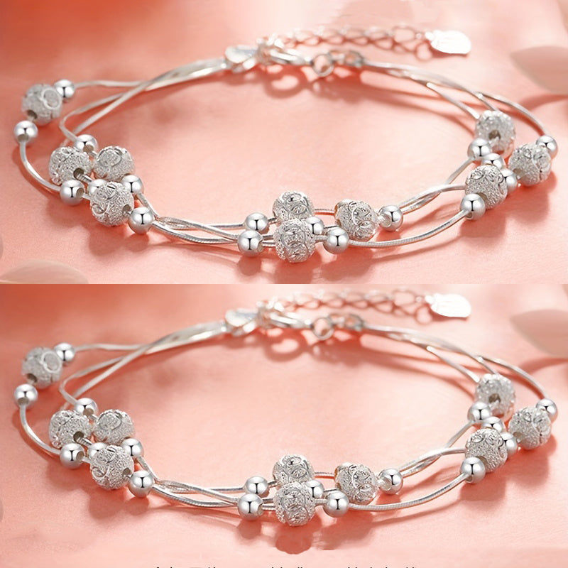 This bracelet features a multilayer design with transfer beads, adding a touch of elegance to any outfit.