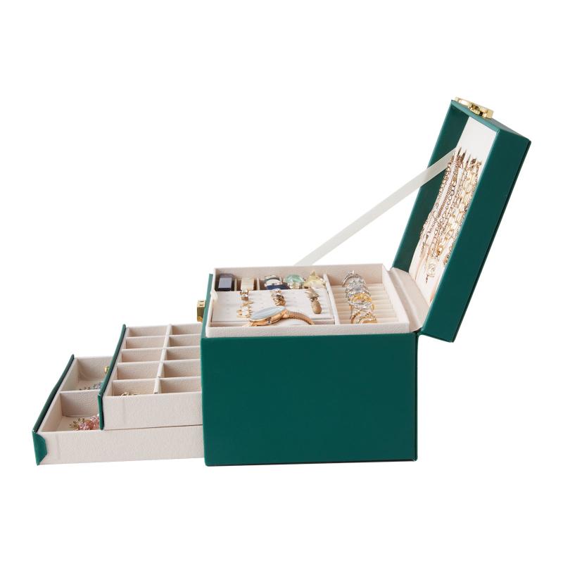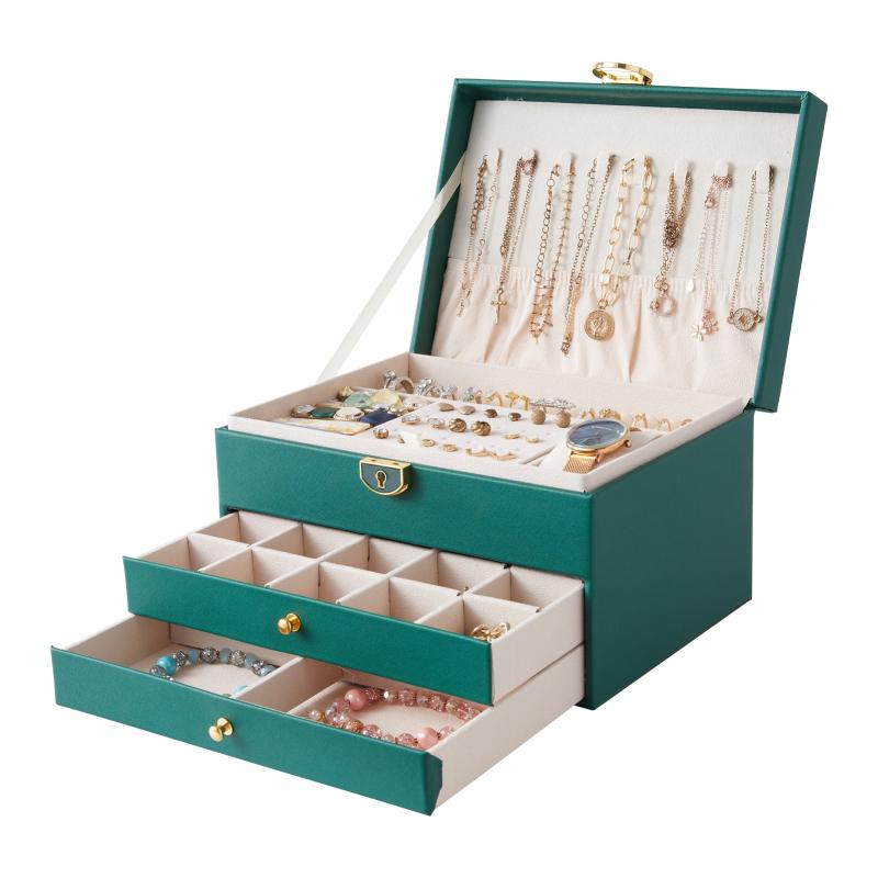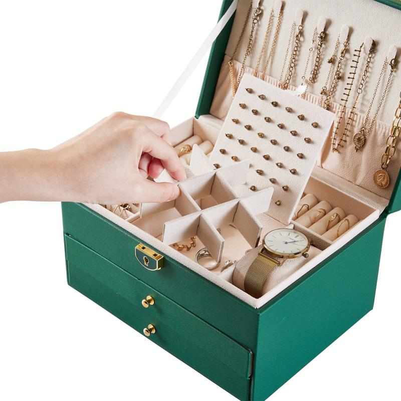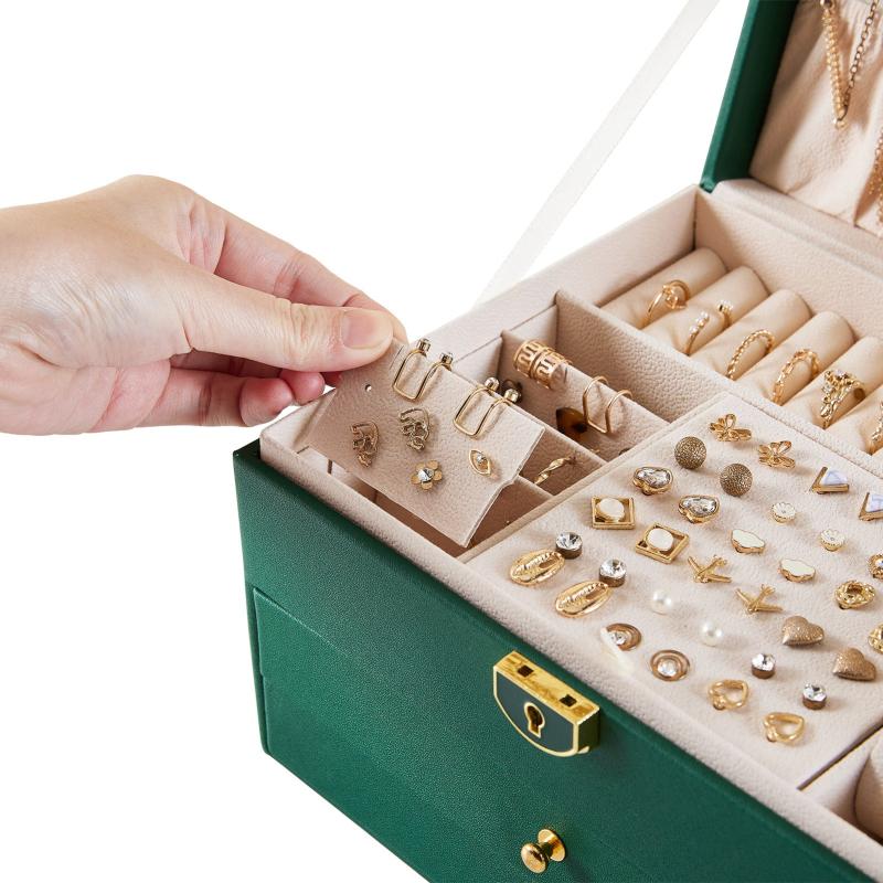 Keep your precious jewellery organized and safe with this elegant jewellery box. It features multiple compartments for necklaces, earrings, rings, bracelets, and more.