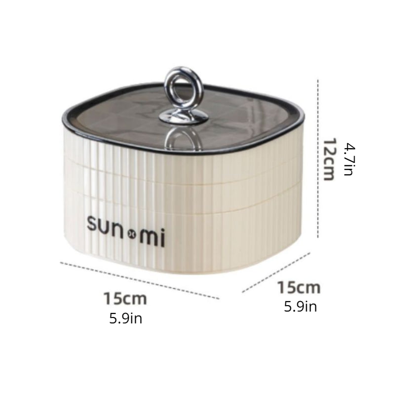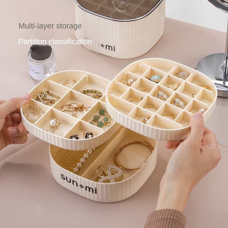 Keep your jewelry organized with this versatile 3-layer storage box. Perfect for storing earrings, necklaces, and other accessories.