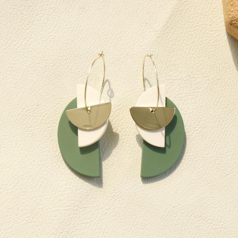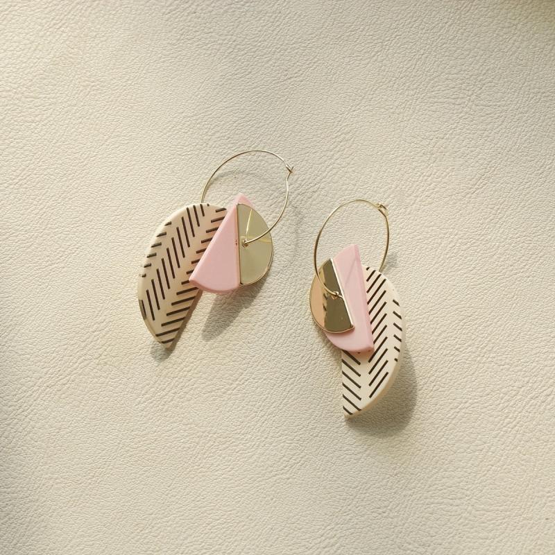 Add a touch of holiday vacation vibe to your outfit with these unique and stylish hoop earrings made of polymer clay with a retro texture design.