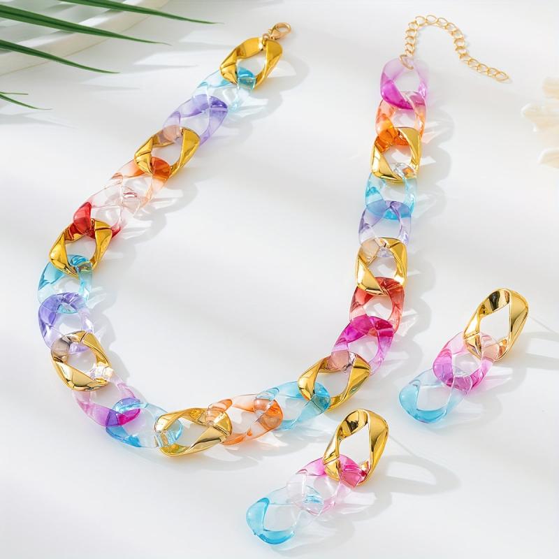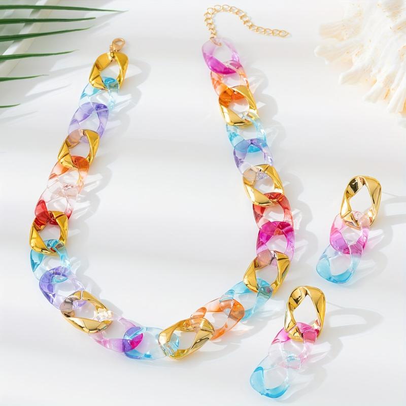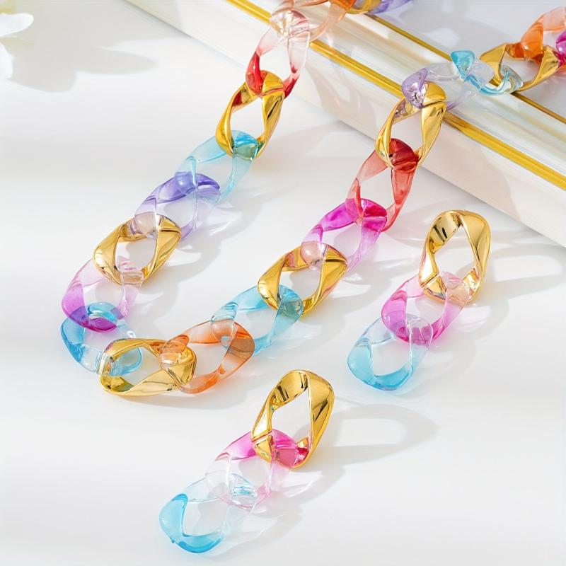 Elevate your style with this set of 3 fashionable hollow CCB Cuban gradient chain necklaces. Perfect for daily wear or parties.