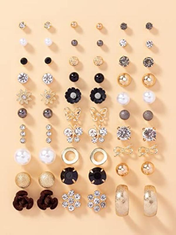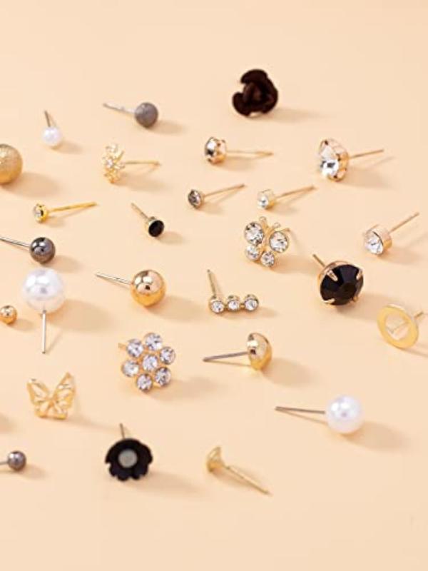 Upgrade your earring collection with this set of 30 pairs of crystal pearl earrings. Each pair is designed with the latest styles and made with high-quality materials.