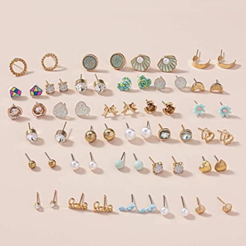 Upgrade your earring collection with this combo pack of 30 quirky pairs of plated studs. Perfect for adding a touch of fun to any outfit.